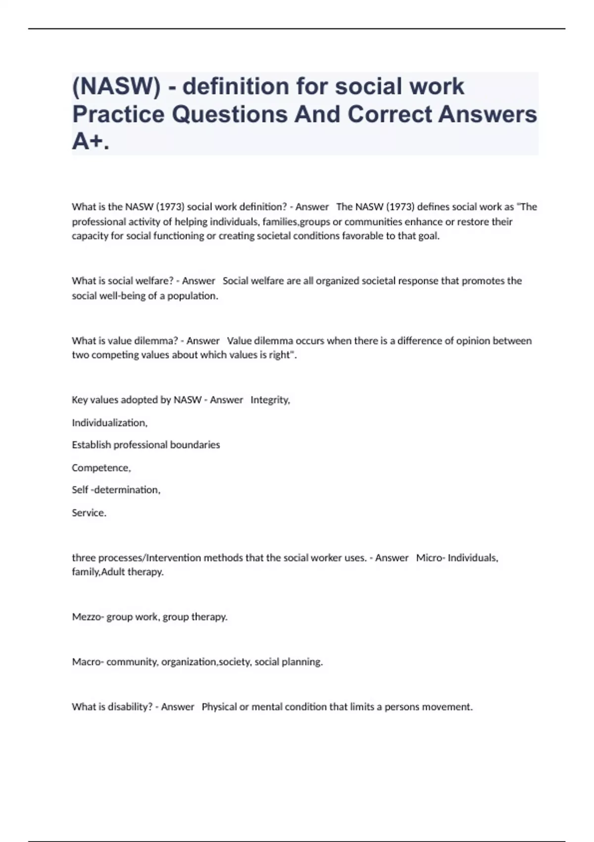 1 Exam (elaborations) UKY Comp Training Exam Questions With Complete Solutions 2 Exam (elaborations) SOWK 510 Midterm Exam Questions And All Correct Answers. 3 Exam (elaborations) SOWK 494 CompRevision Exam Fully Answered. 4 Exam (elaborations) SOWK 450 Final Exam Questions And Correct Answers.