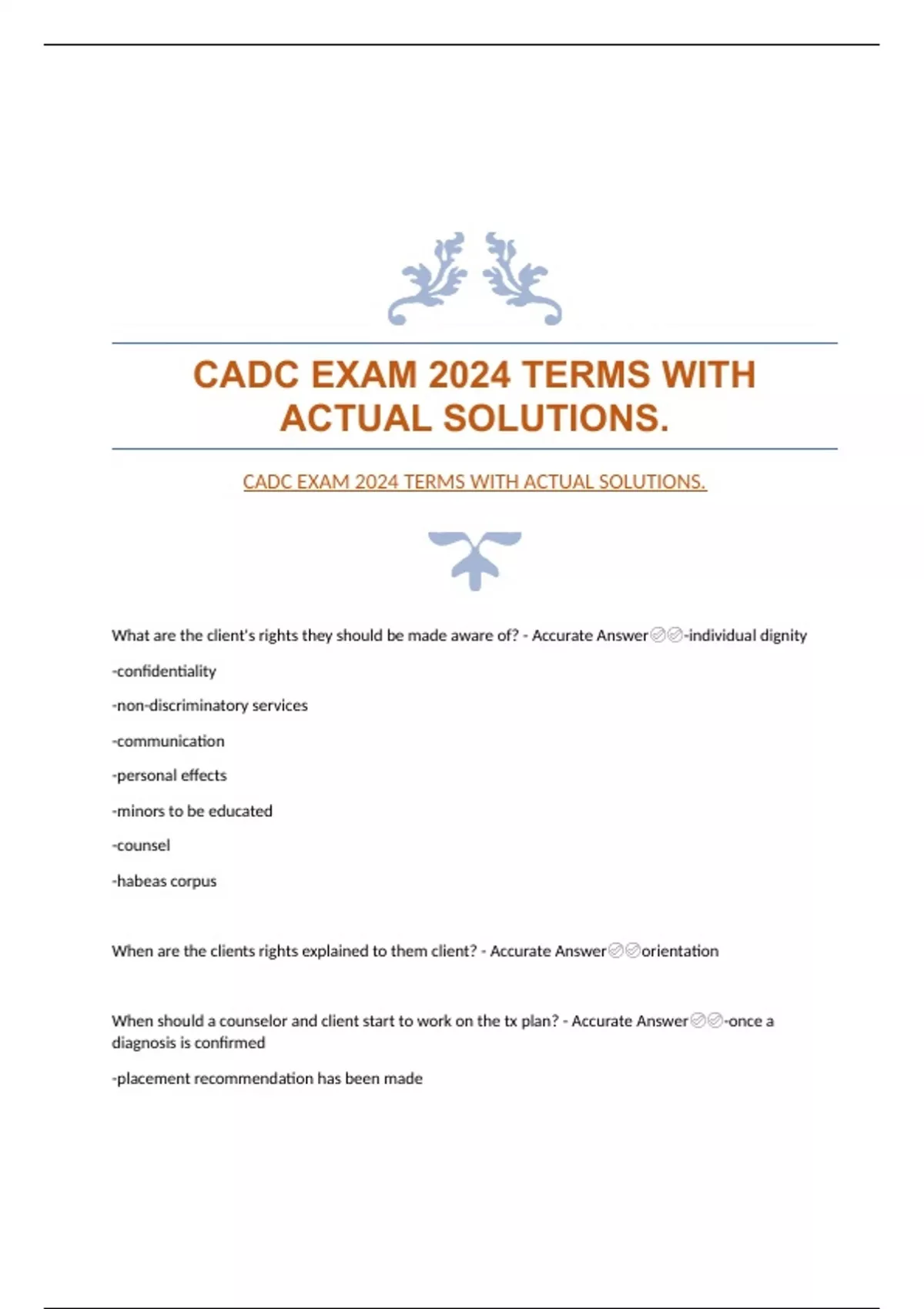 CADC PRACTICE EXAM QUESTIONS SHEET WITH ACCURATE ANSWERS CADC IL STUDY QUESTIONS WITH GUARANTEED ACCURATE ANSWERS CADC EXAM 2024 TERMS WITH ACTUAL SOLUTIONS. CADC QUESTIONS & ANSWERS|GUARANTEED EXAM RESOURCE WITH ACCURATE ANSWERS CADC PRACTICE EXAM TEST QUESTIONS WITH GUARANTEED ACCURATE ANSWERS
