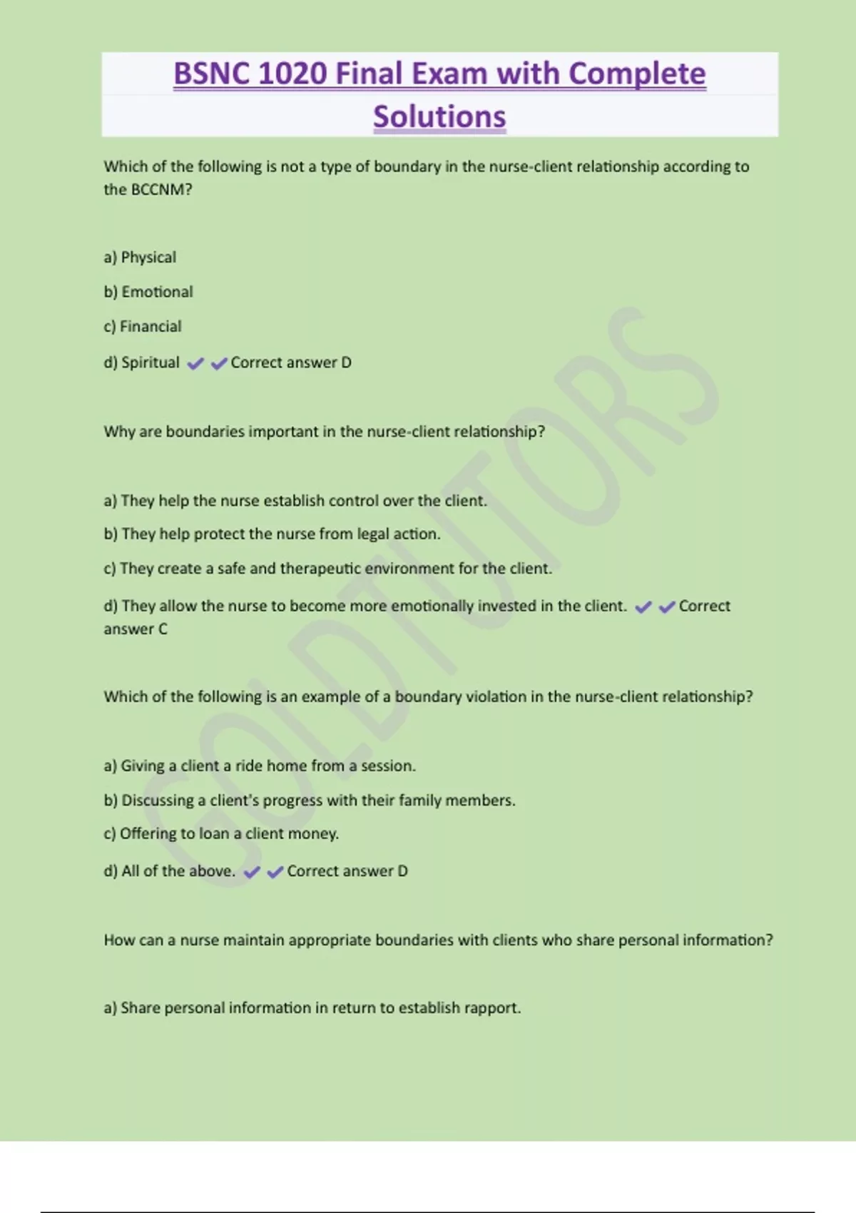 BSNC 1020 – Midterm Exam; Modules 1-3- Questions and Answers 100% Solved 2 Exam (elaborations) BSNC 1020 TMI ::-Questions and Answers 100% Solved 3 Exam (elaborations) BSNC 1020 Final Exam with Complete Solutions 4 Exam (elaborations) BSNC 1020 Final Exam with Complete Solutions 5 Exam (elaborations) BSNC 1020 Final Exam with Complete Solution