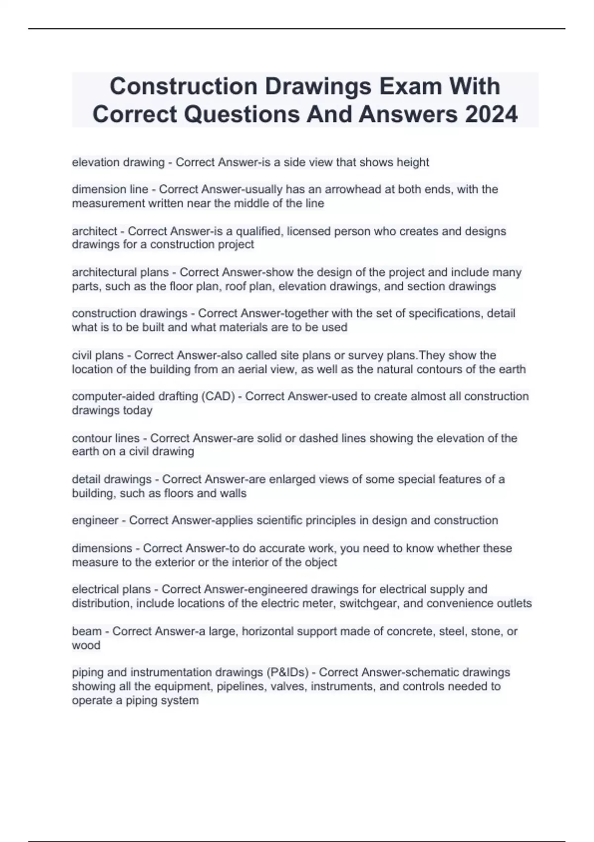 RESIDENTIAL CONSTRUCTION BASICS EXAM QUESTIONS WITH CORRECT ANSWERS 2024 PRINCIPLES OF CONSTRUCTION EXAM 1 WITH CORRECT ANSWERS 2024 PRINCIPLES OF BUILDING CONSTRUCTION INFORMATION AND COMMUNICATION EXAM 2024 PE CONSTRUCTION EXAM 2024 NEW YORK REAL ESTATE UNIT 15 CONSTRUCTION EXAM 2024 FUNDAMENTALS OF BUILDING CONSTRUCTION CHAPTER 1EXAM 2024 FT 161