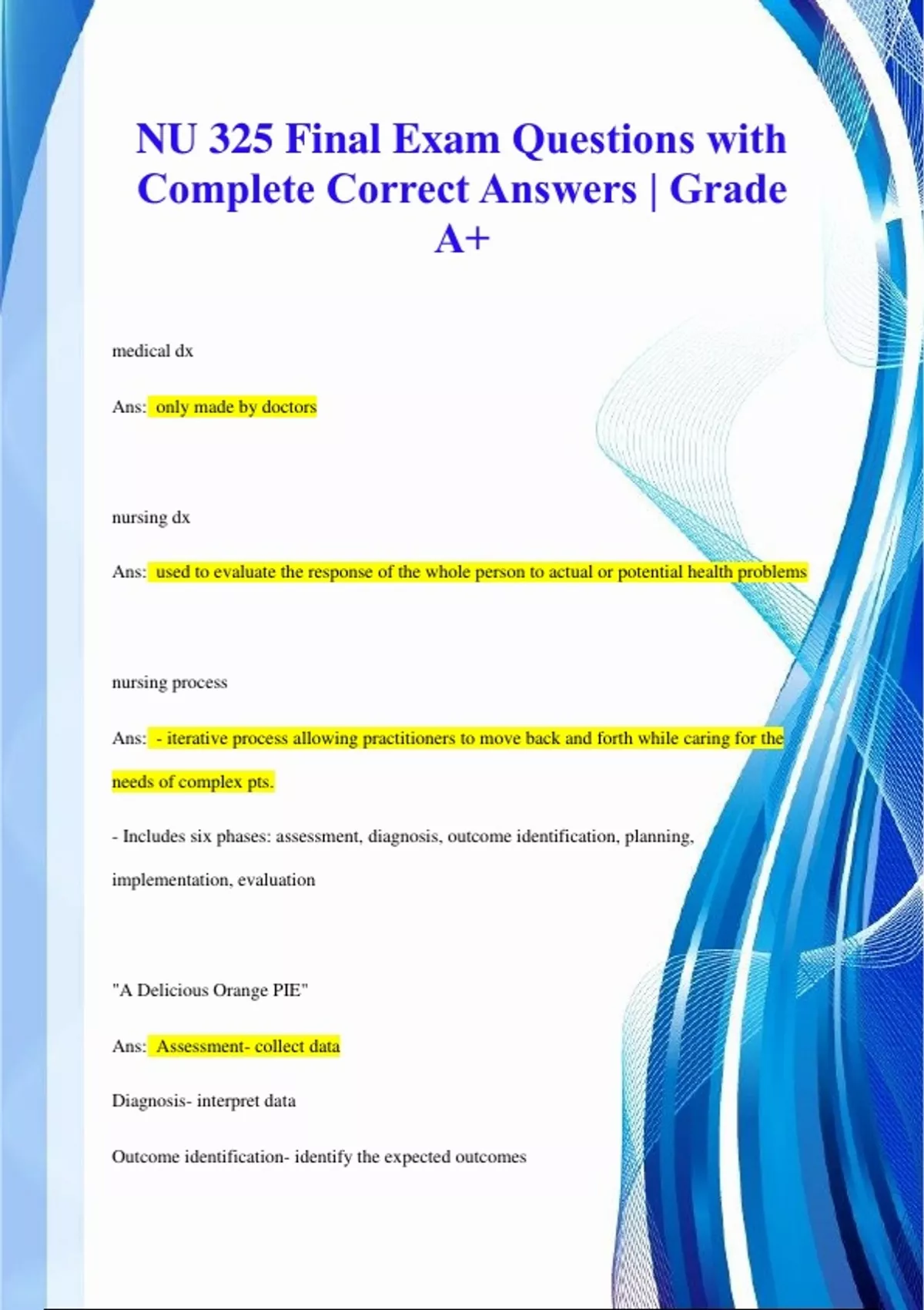 NUR 325 Exam 1 ASU Questions with Complete Correct Answers | Grade A+