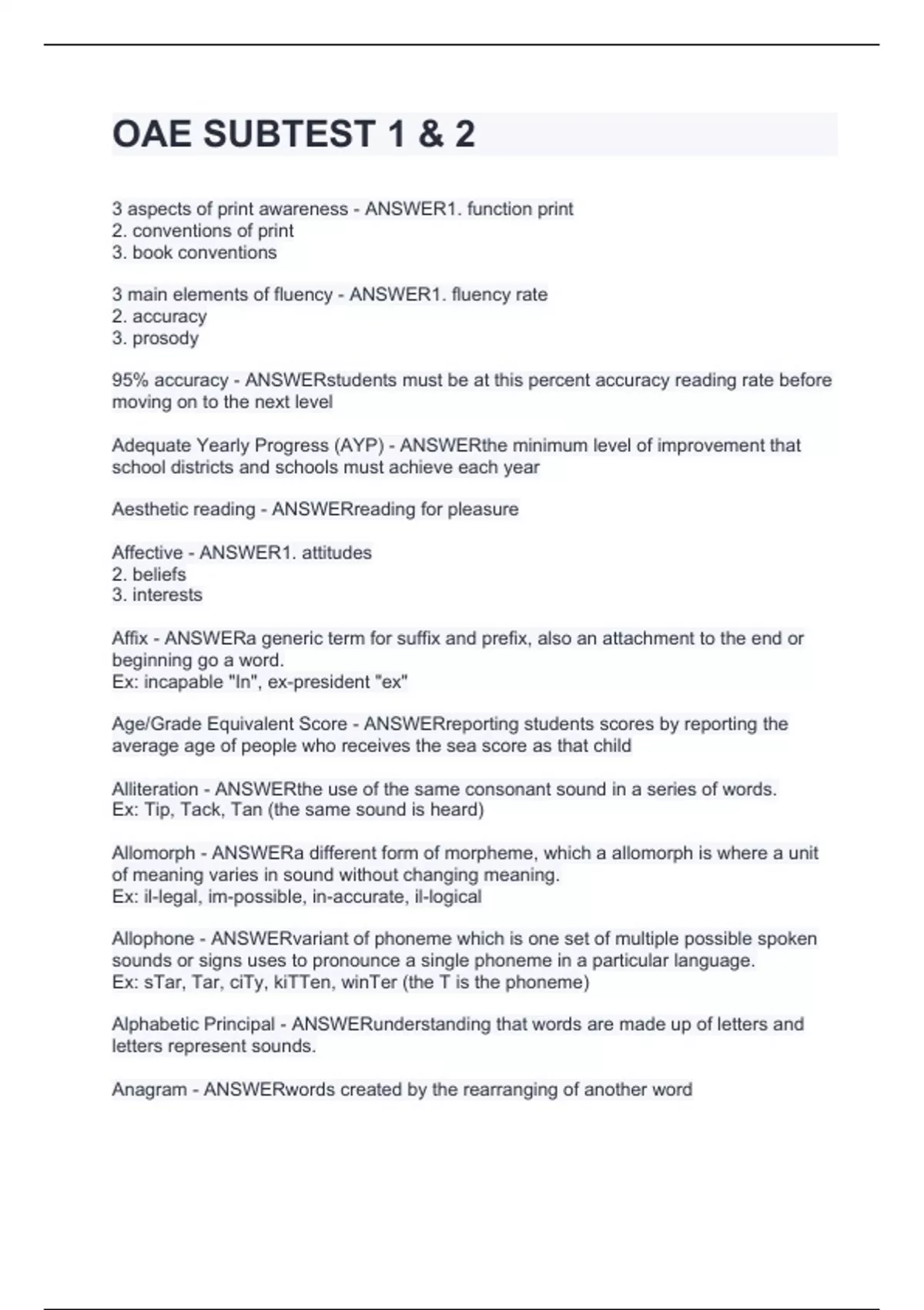 Exam (elaborations) 012 oae practice test.Test 2024 questions and answers 2024 Exam (elaborations) OAE 001 Assessment of Professional Knowledge Early Childhood (PK-3).Complete 2024 questions and answers 100% Exam (elaborations) OAE 021 TESOL I on the first try.Exam 2024 questions and answers scored A+ Exam (elaborations) OAE Assessment of Pr