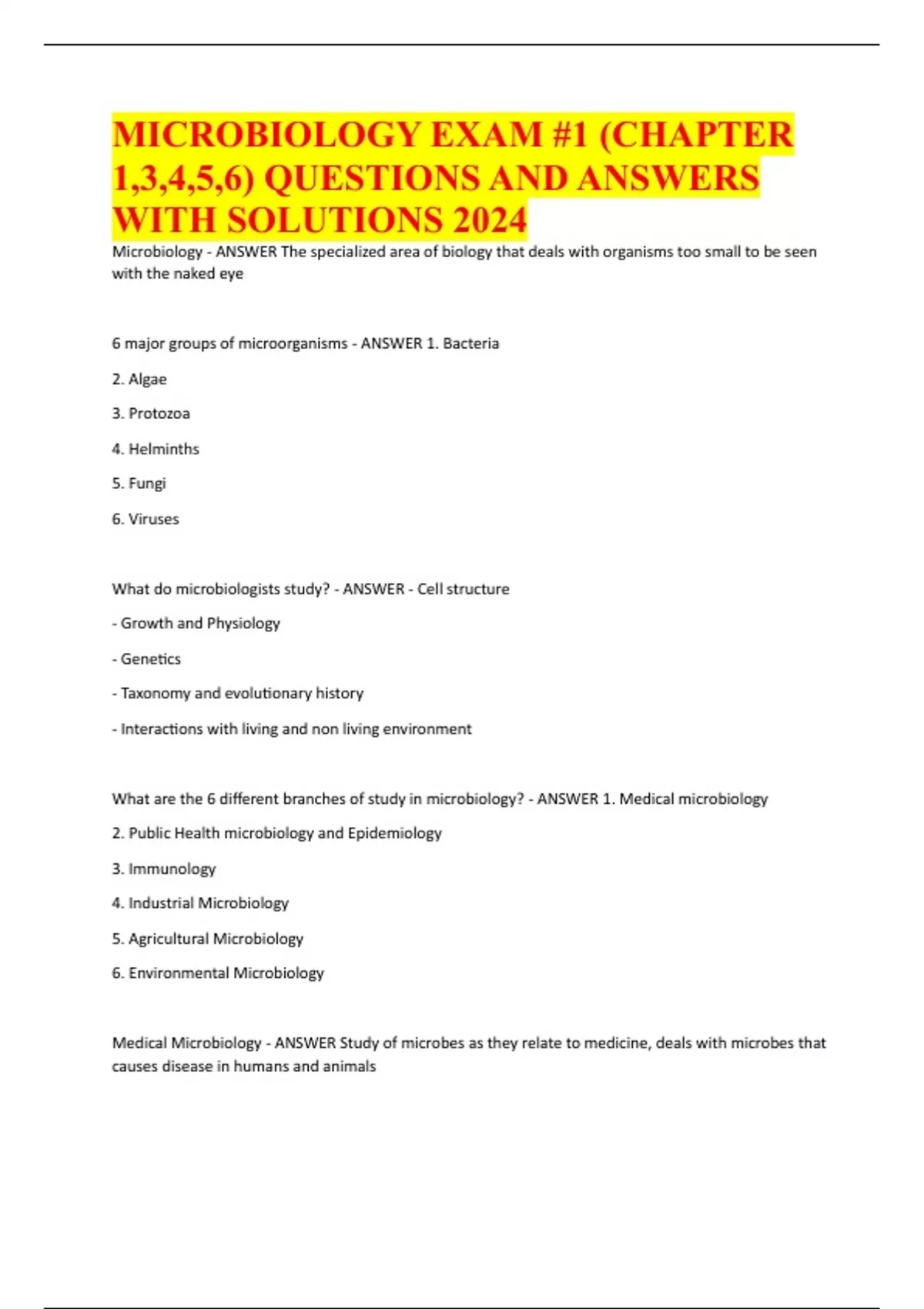 MICROBIOLOGY PACKAGE DEAL QUESTIONS AND ANSWERS WITH VERIFIED SOLUTIONS UPDATED 2024
