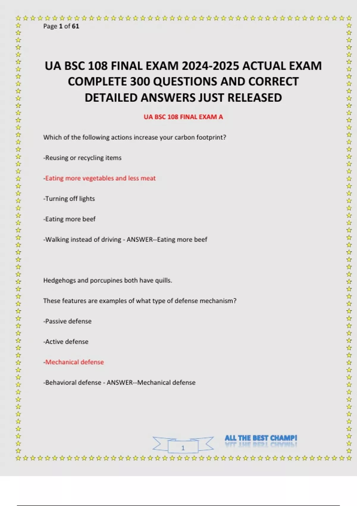 UA BSC 108 FINAL EXAM ACTUAL EXAMS