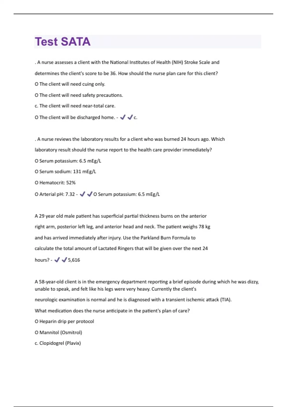 Test SATA Questions And Answers With Verified Solutions Graded A+
