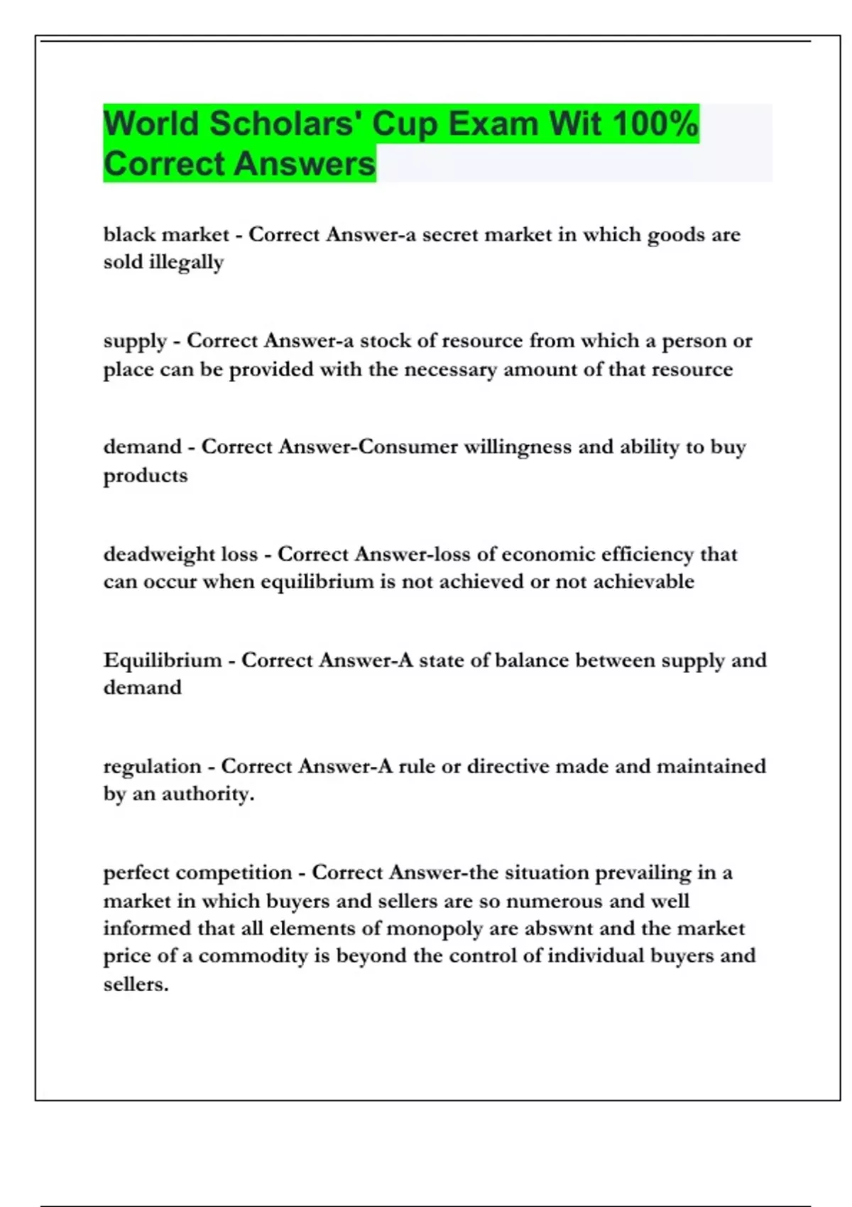 Package deal for World Scholar s Cup Exam With 100% Correct Answers