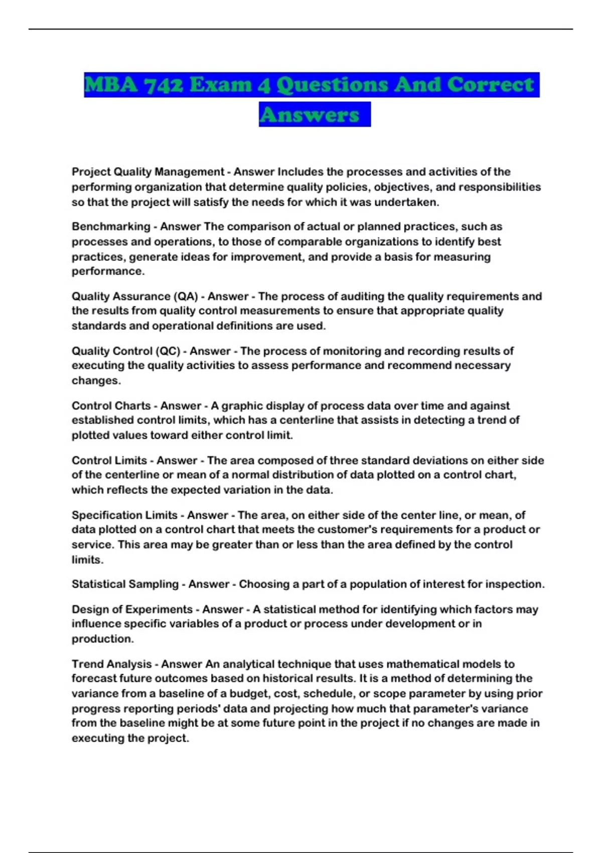 MBA 742 Exam 4 Questions And Correct Answers