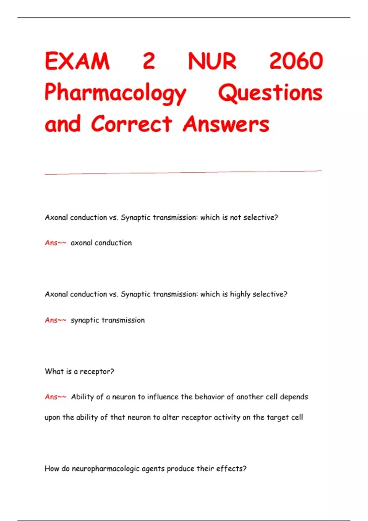 EXAM NUR 2060 Pharmacology Questions and Correct Answers
