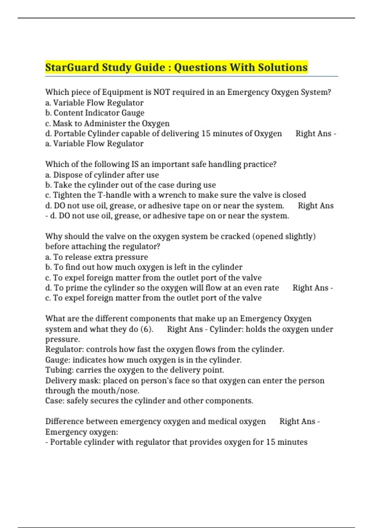 Oxygen STARGUARD - Questions With Correct Answers