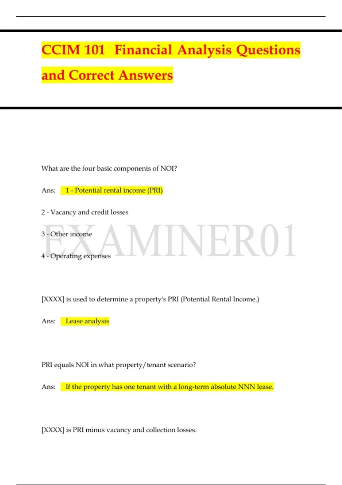 CCIM 101 Module 1 / CCIM 101 Financial Analysis Questions and Correct Answers