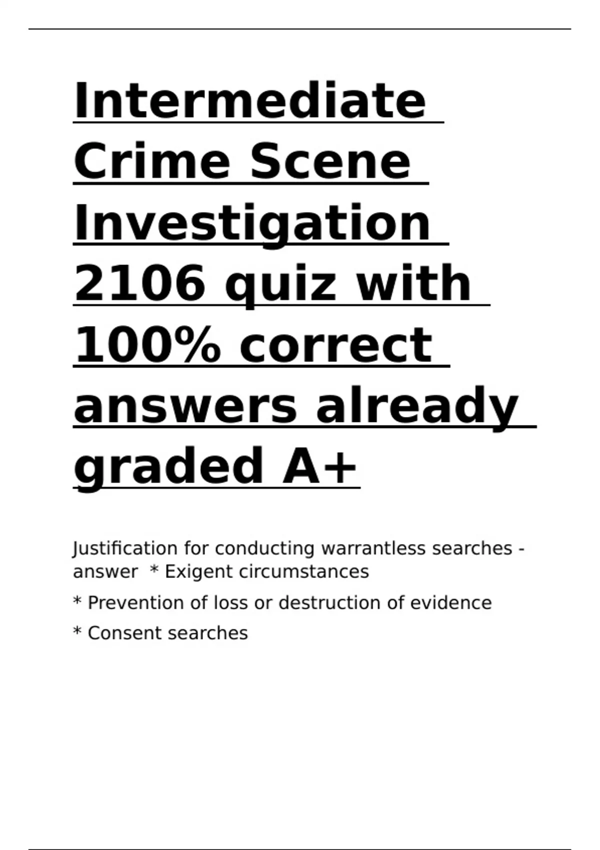 Intermediate Crime Scene Investigation 2106 quiz with 100- correct answers already graded A+.