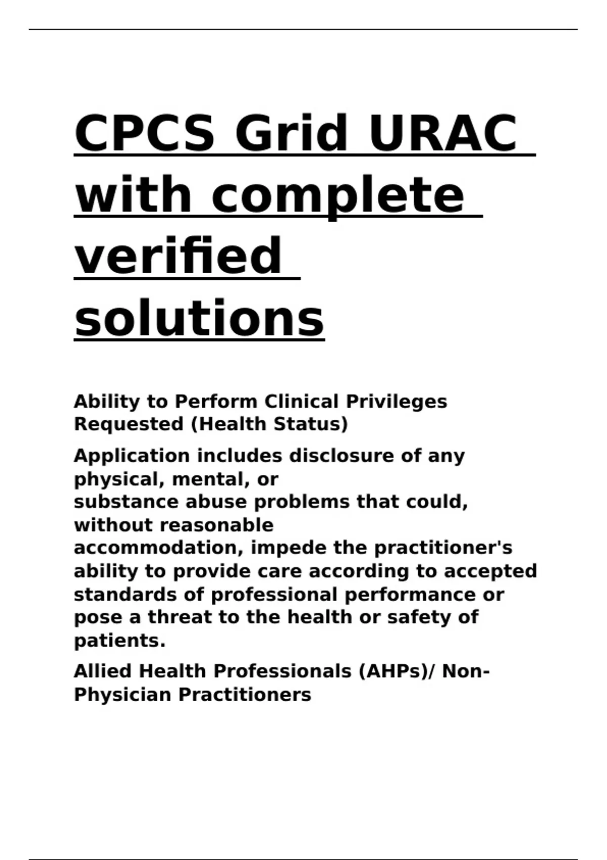 CPCS Grid URAC with complete verified solutions