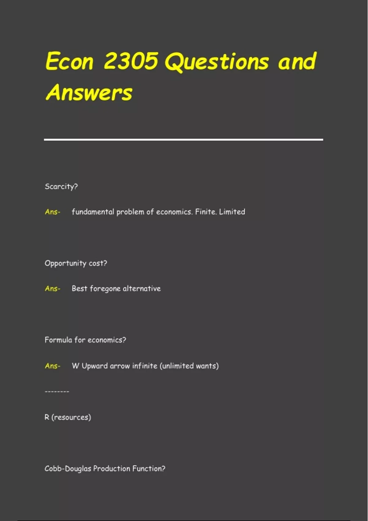 Econ 2305 Questions and Answers
