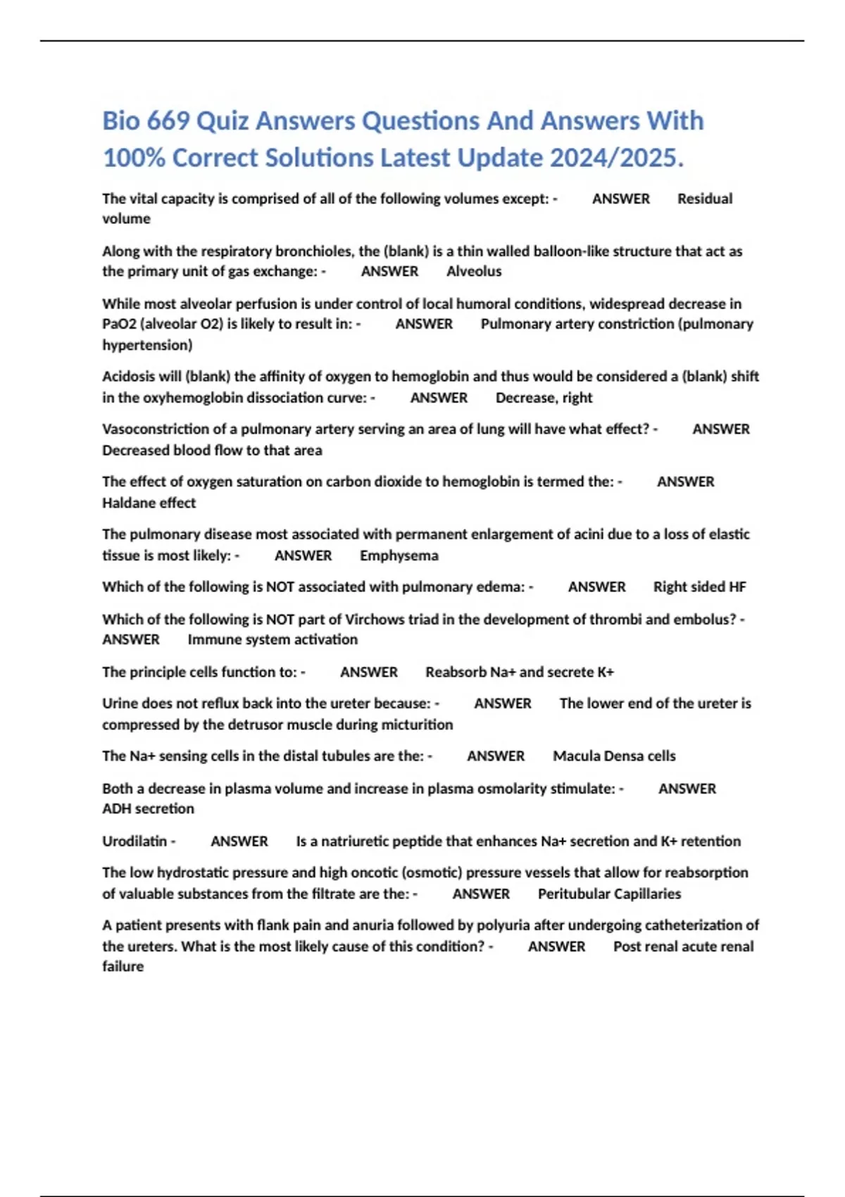 Bio 669 Quiz Answers Questions And Answers With 100% Correct Solutions Latest Update 2024/2025.