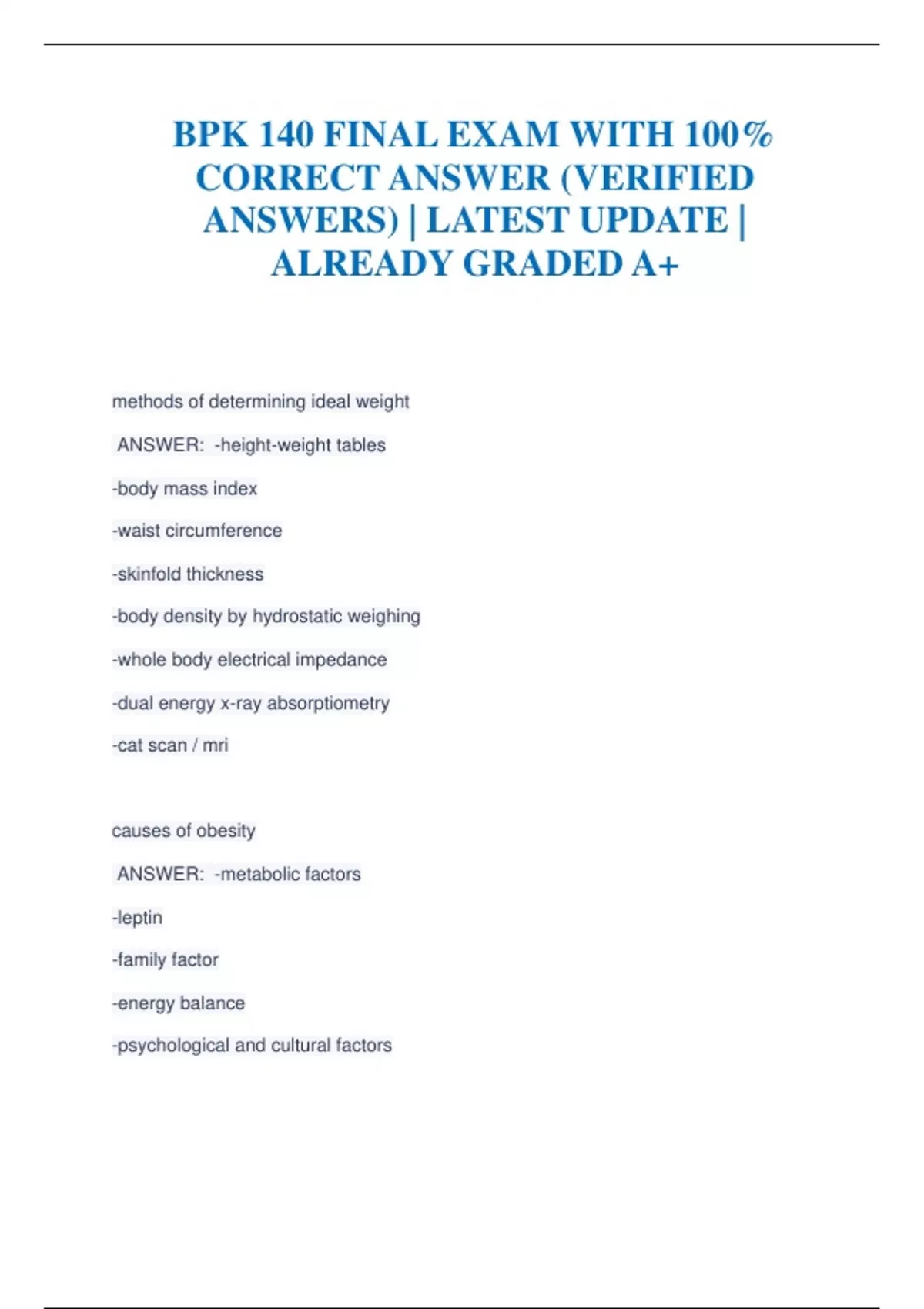 BPK 140 EXAM WITH 100% CORRECT ANSWER (VERIFIED ANSWERS) | LATEST UPDATE | ALREADY GRADED A+