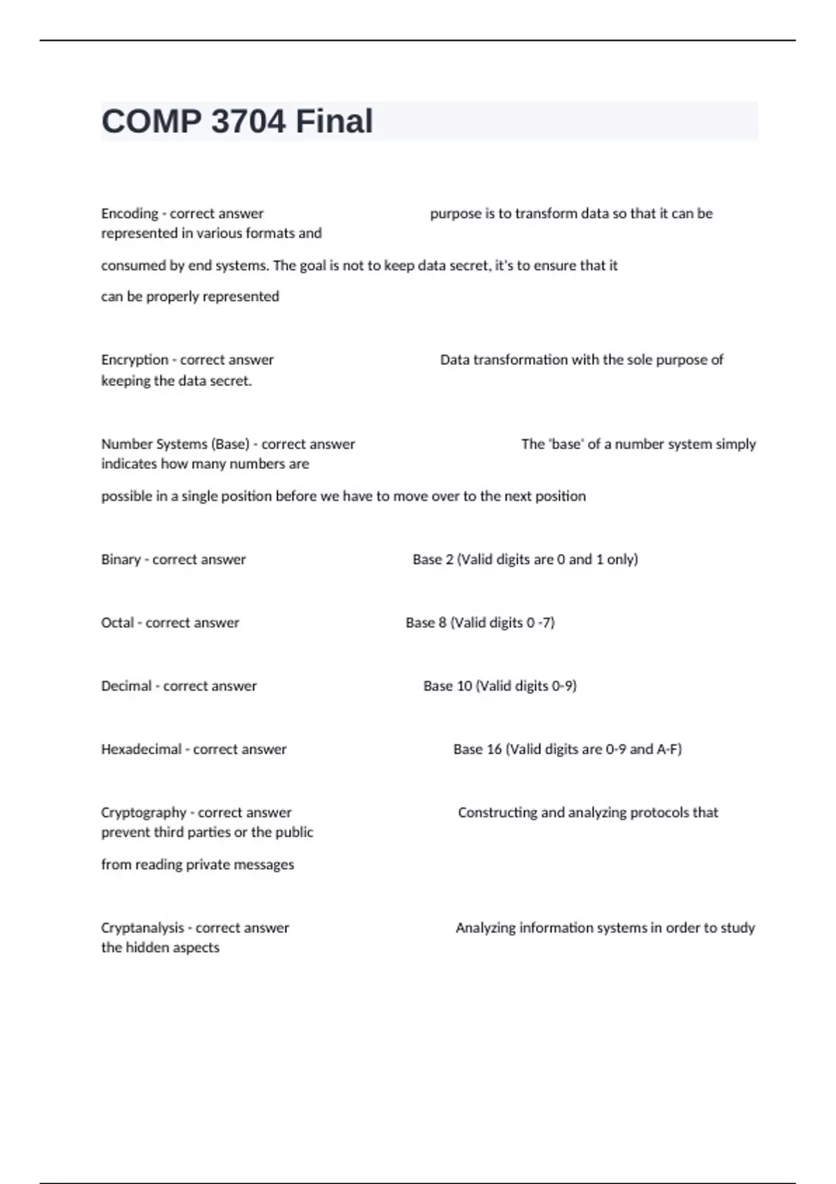 package deal of COM 3704 Combined Exam Correctly Answered.