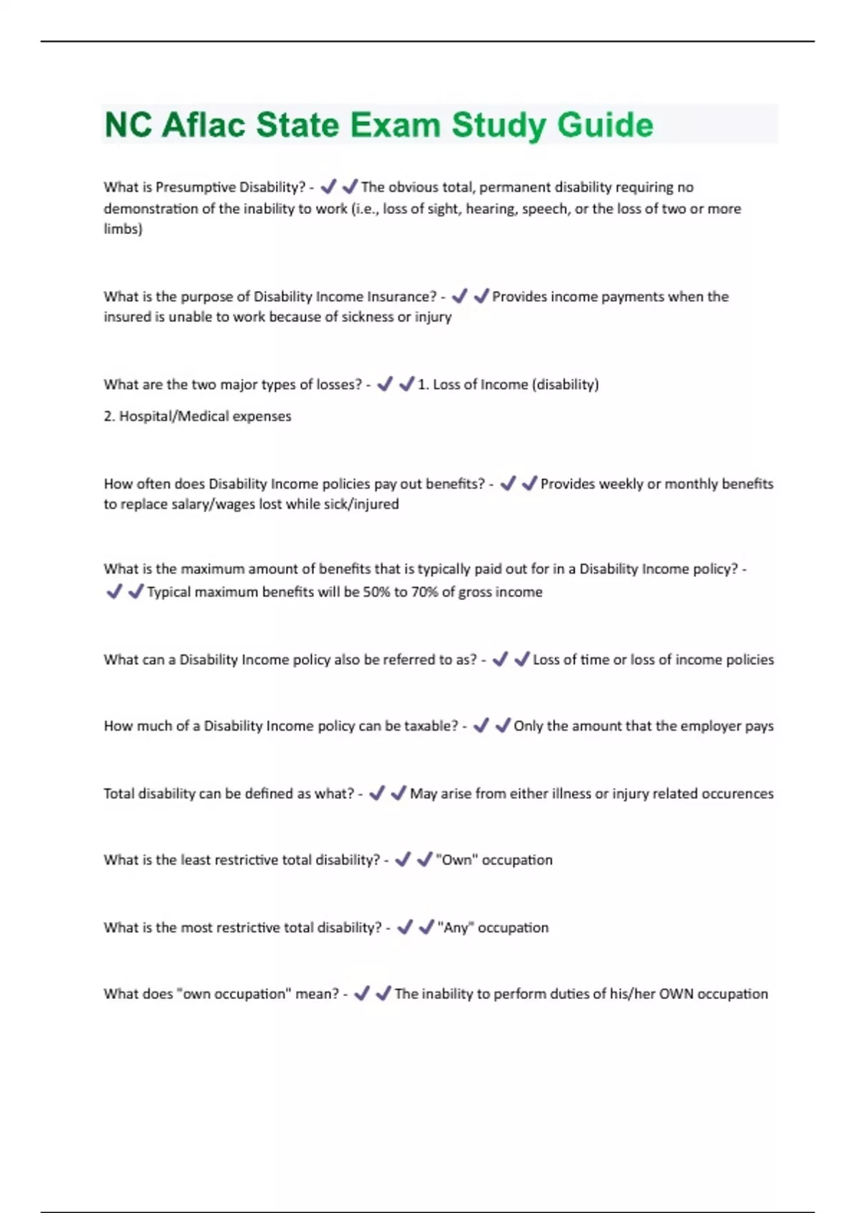 NC Aflac State Exam Study Guide Verified Questions And Answers With Verified Updates