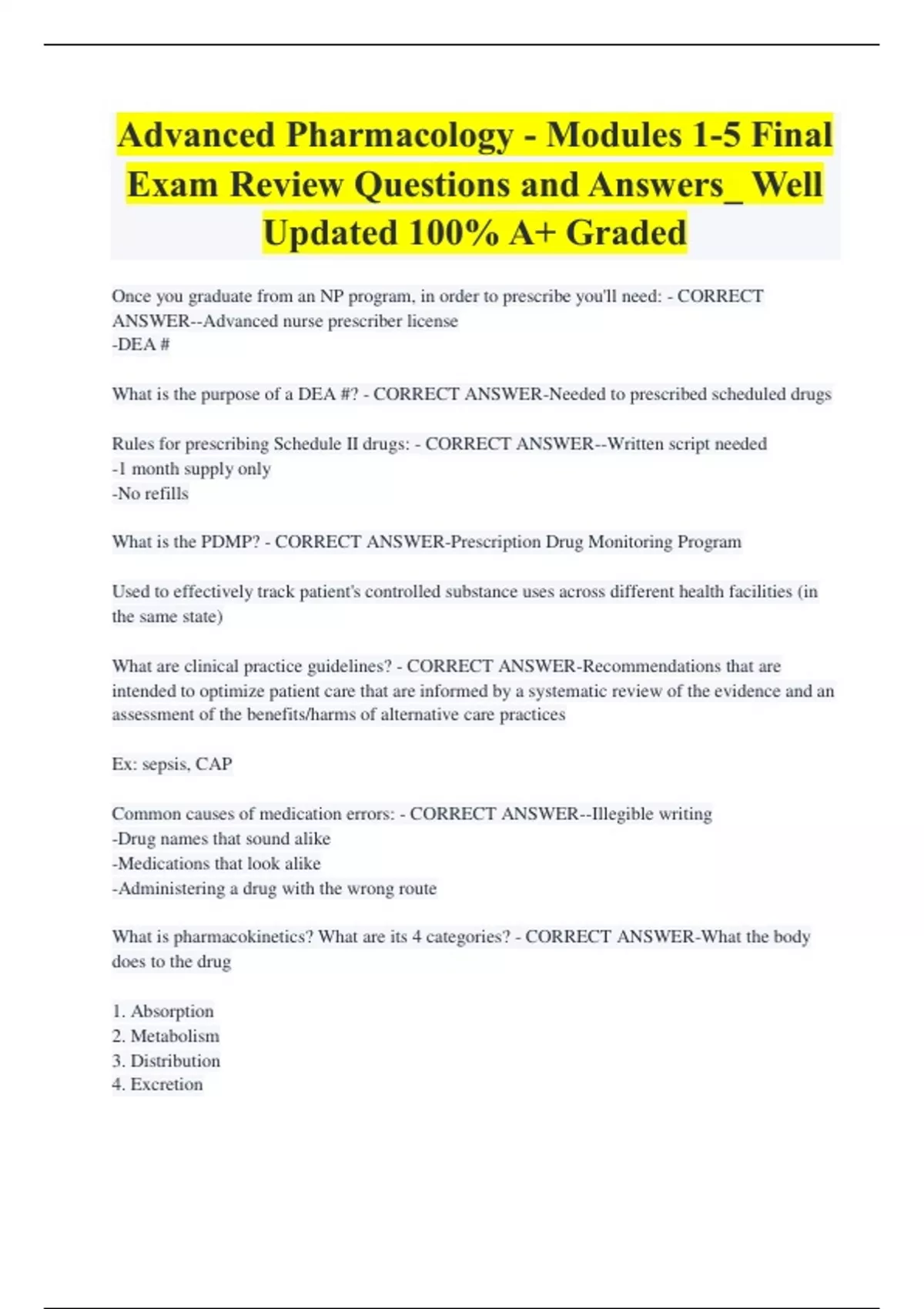 Advanced Pharmacology - Modules 1-5 Final Exam Review Questions and Answers_ Well Updated 100% A+ Graded Plus Package Deal 100% A+