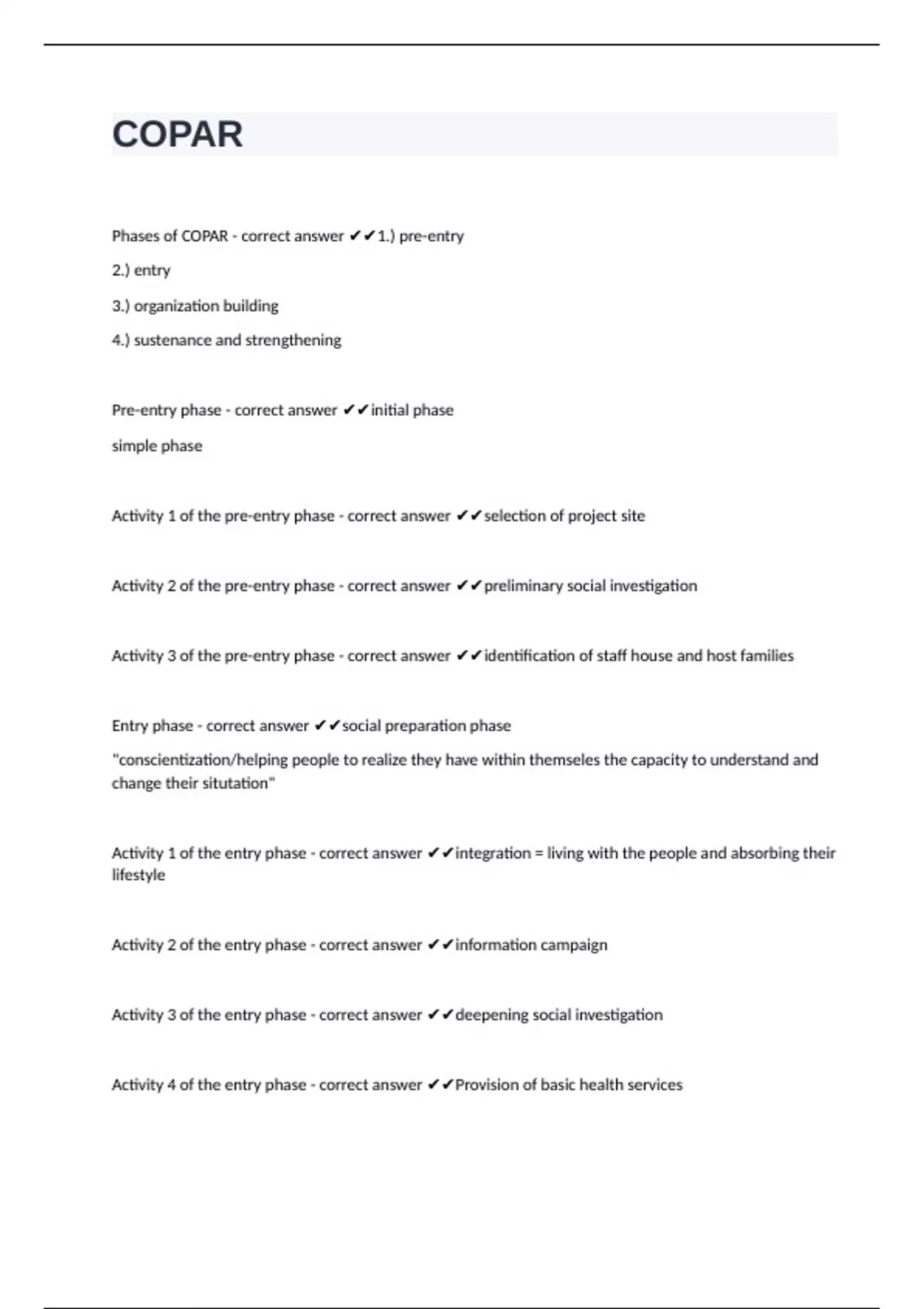 COPAR - Pre-Entry to Entry Phase questions with complete solutions