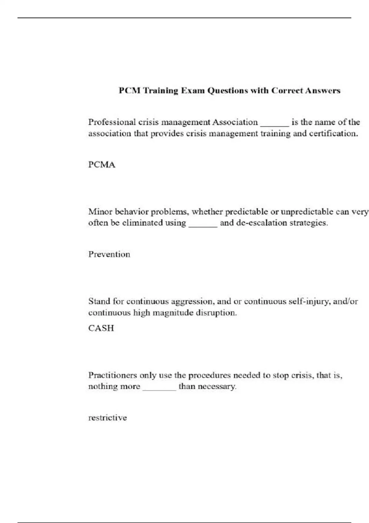 PCM Recert Training Exam Study Guide