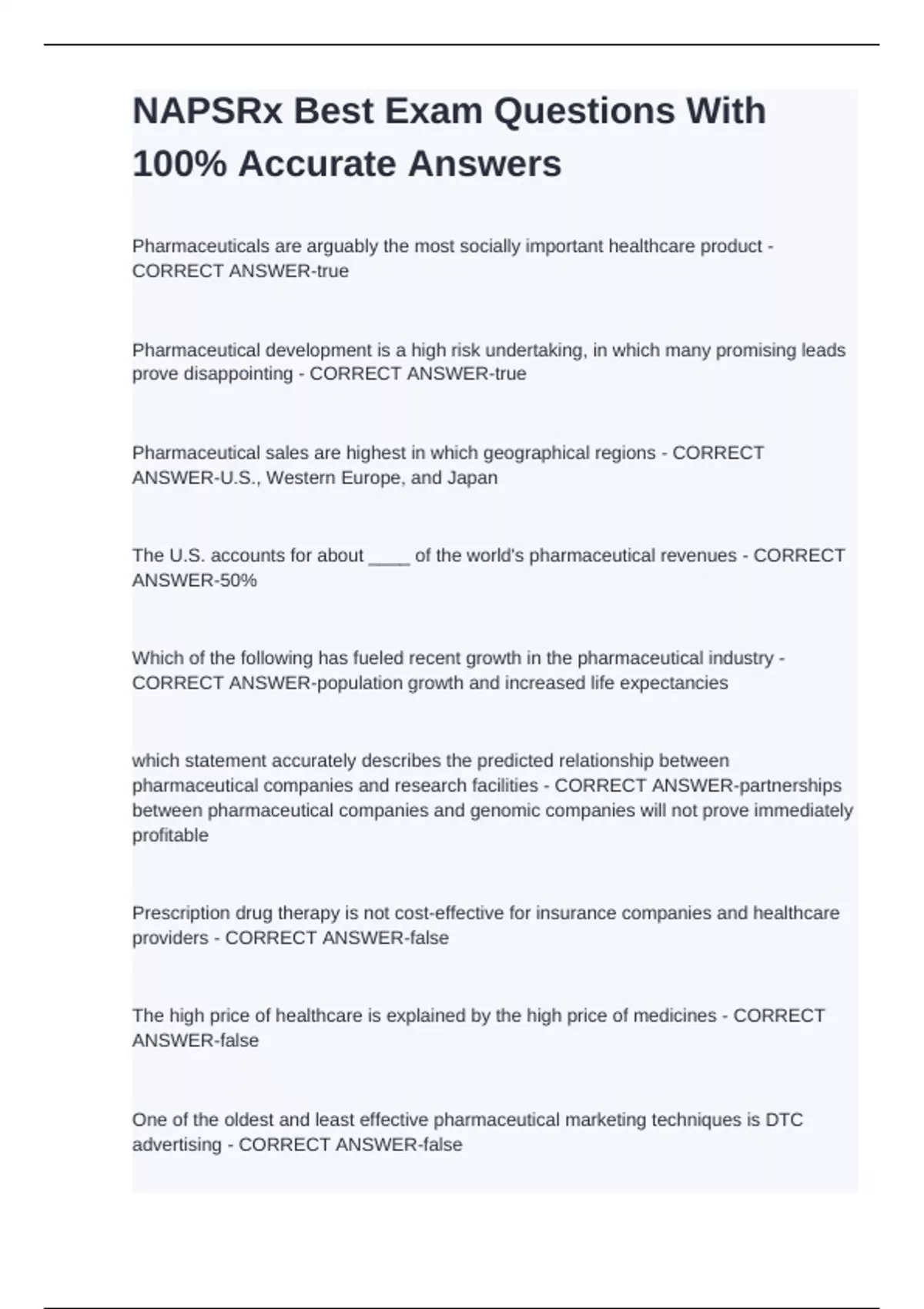NAPSRx Best Exam Questions With 100% Accurate Answers