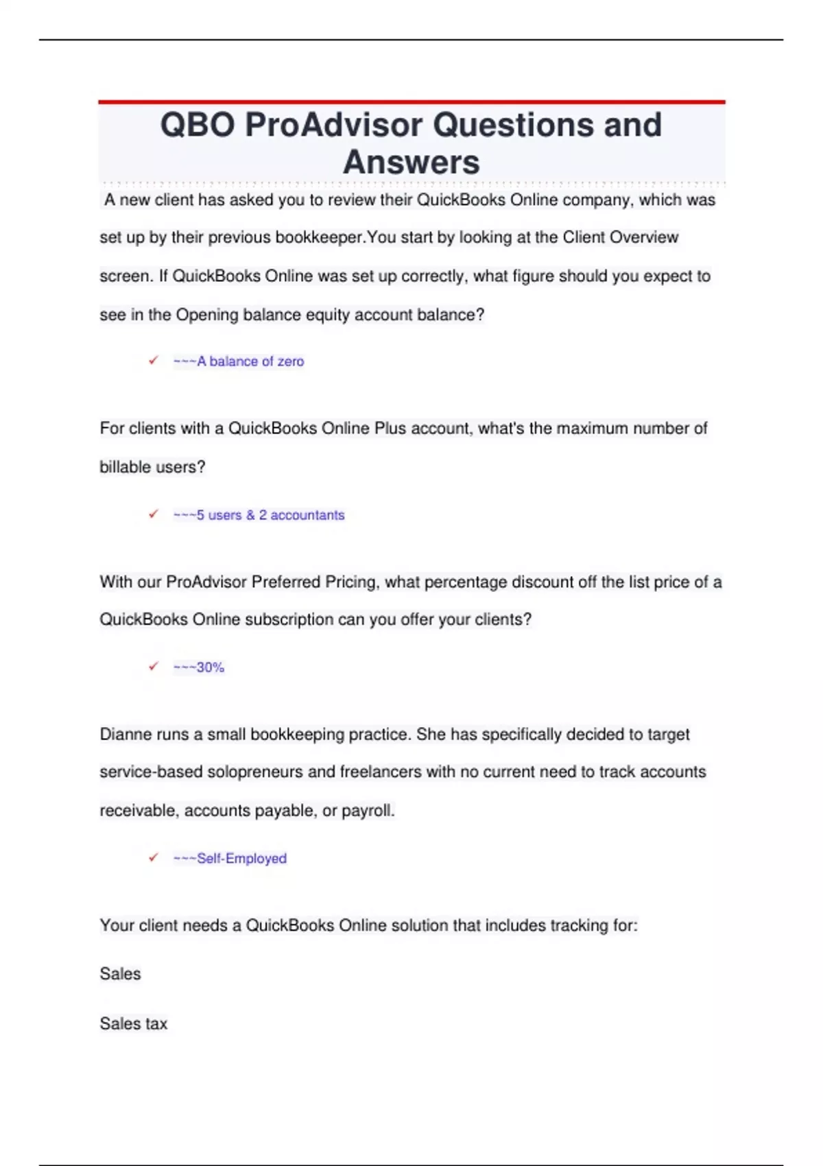 QBO Certification Exam Questions and Answers