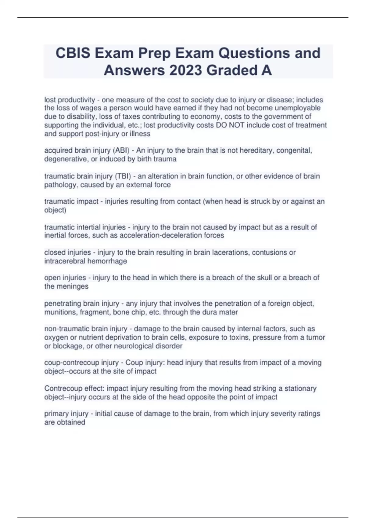 Complete Package Deal For CBIS EXAM STUDY QUESTIONS AND ANSWERS GRADED A 2024