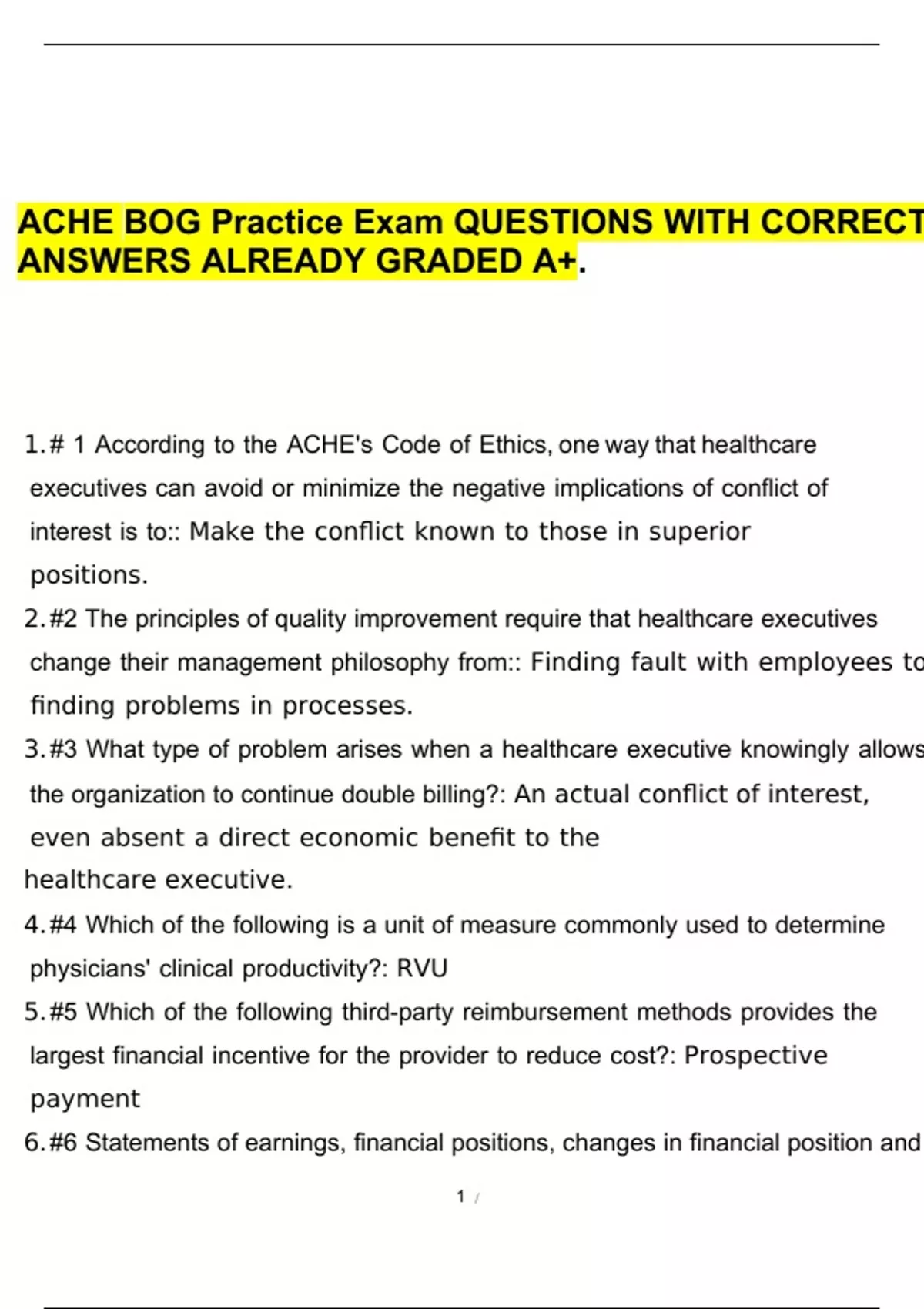 ACHE BOG EXAM BUNDLE 3 VERSIONS COMPILED HERE!!!