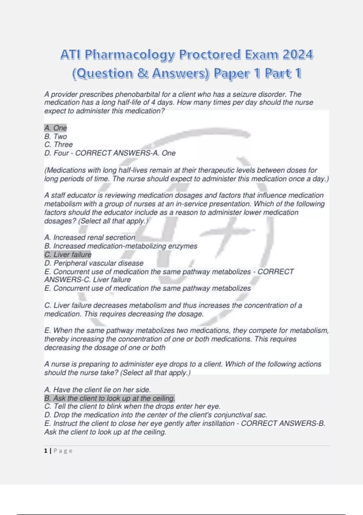 ATI Pharmacology Proctored Exam 2024 (Question & Answers) Paper1