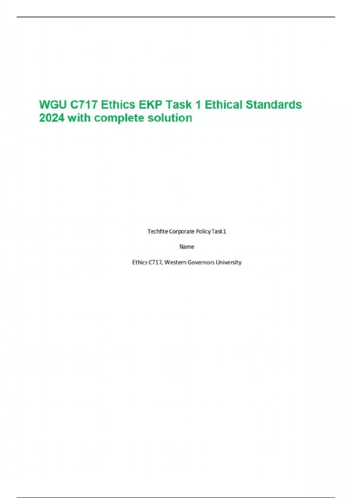 WGU C717 Ethics EKP Task 1 Ethical Standards 2024 with complete solution WGU C717 Ethics Ethical Dilemmas Task 2 Updated 2024 with complete solution