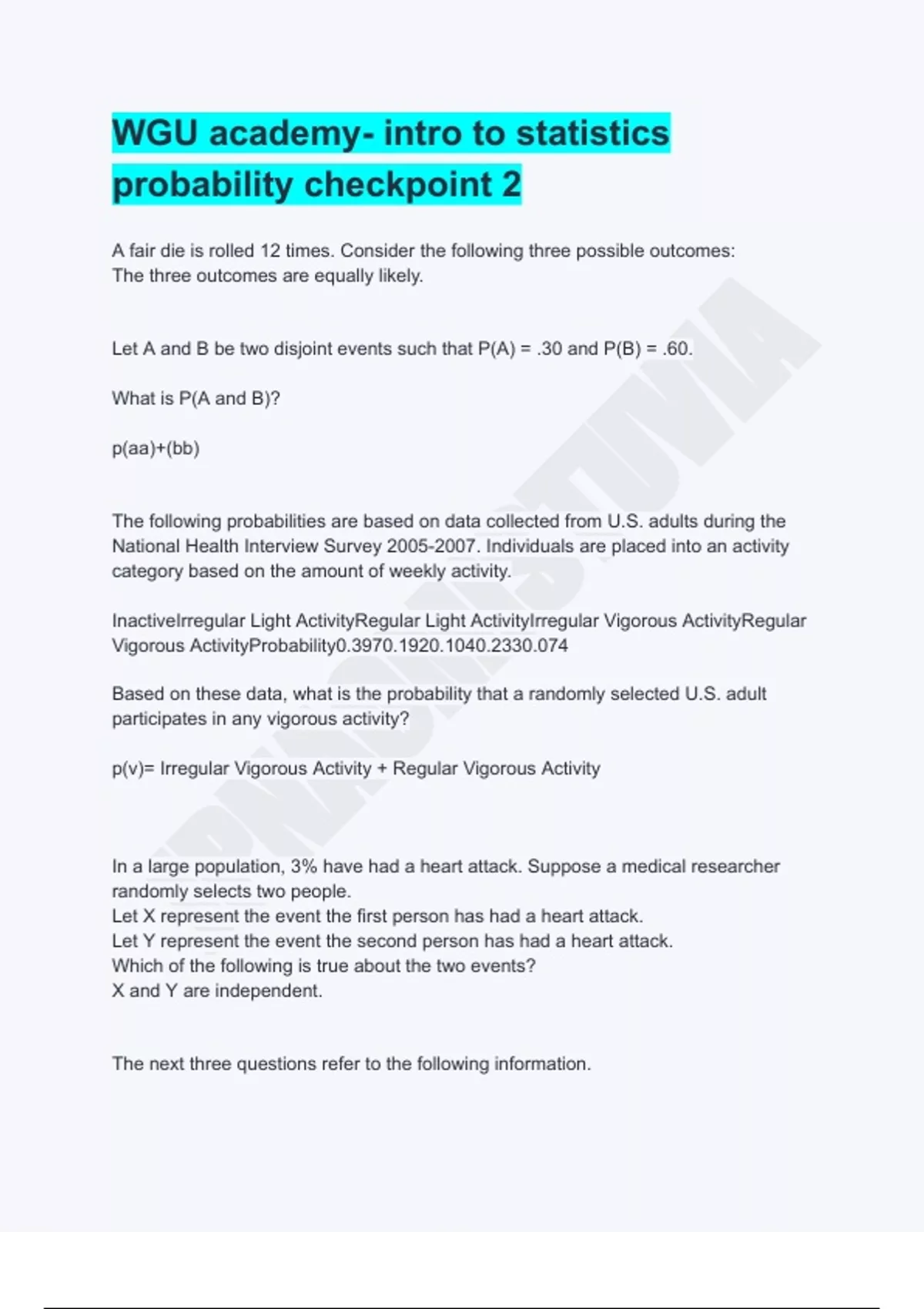 BUNDLE!!! 2025 WGU Academy Statistics Module 1-12 With Diagrams for easier understanding: VERIFIED BY EXPERTS: ALL MODULE CHAPTERS Clearly Explained and 100% CORRECT answered Questions