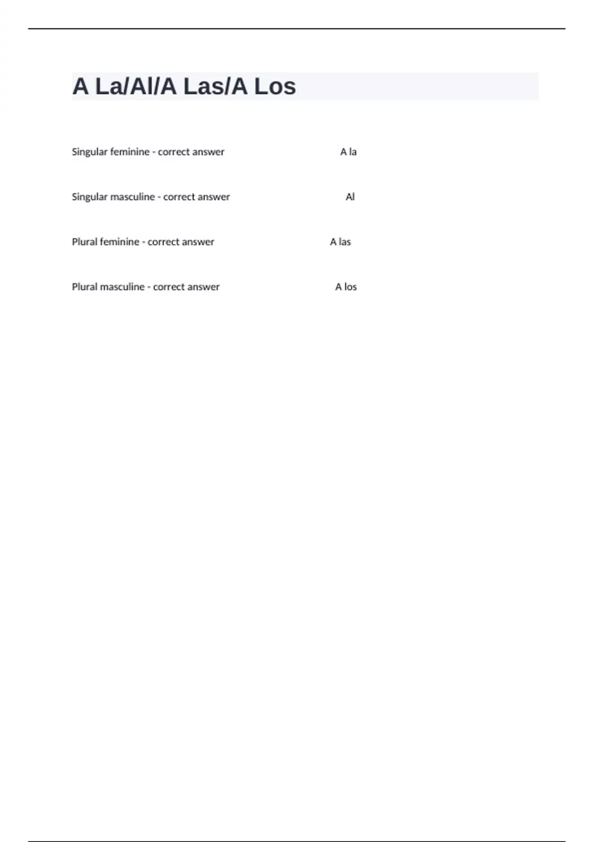 1 Exam (elaborations) Los Castells Certification Exam Questions And Correct Detailed Answers. 2 Exam (elaborations) Los colores Exam Study Complete Questions And Answers, 3 Exam (elaborations) Tarea - Los articulos y los sustantivos Exam Questions With 100% Correct Answers. 4 Exam (elaborations) Spanish Los oficios y las profesiones Complete Que