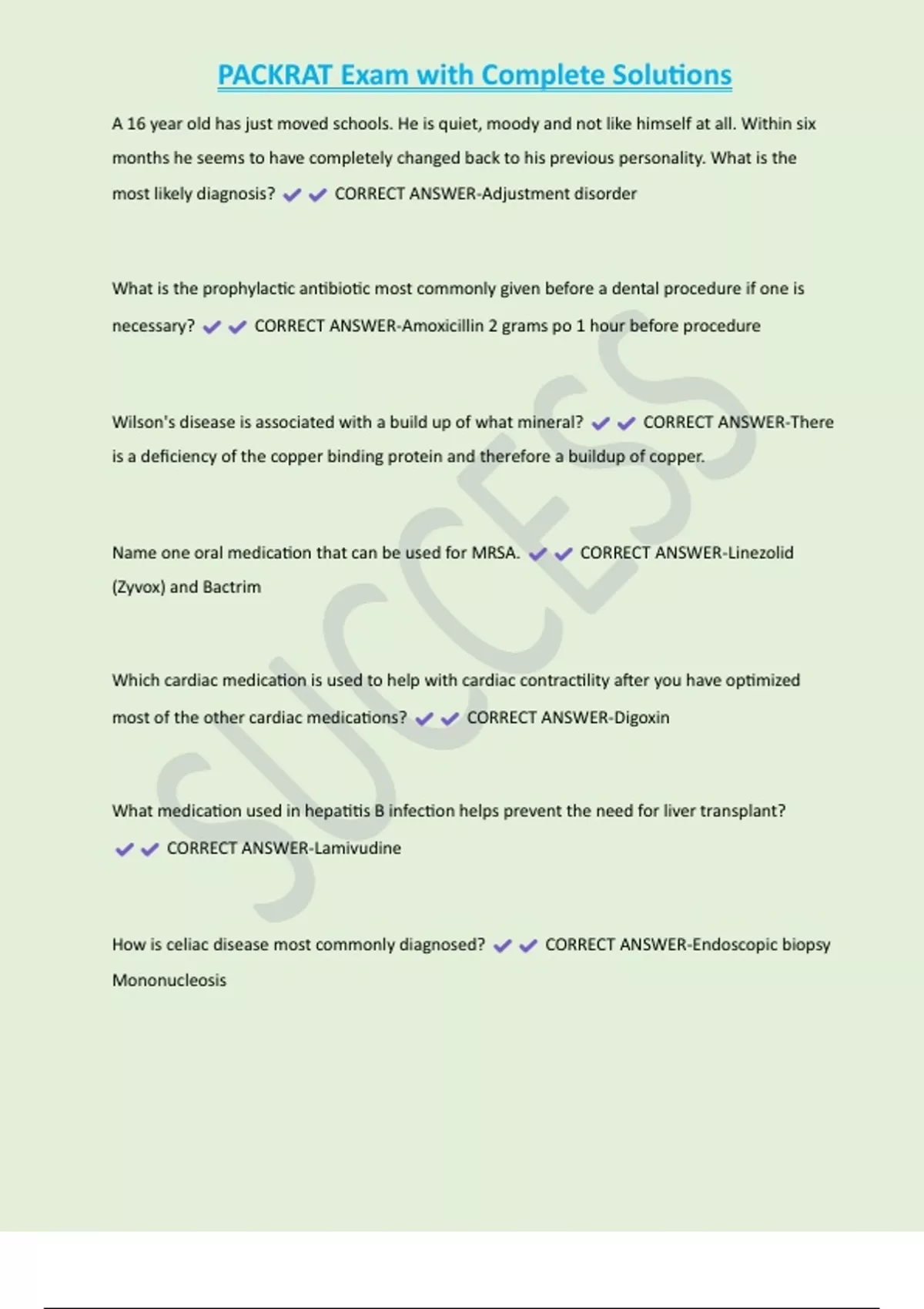 PACKRAT Exam with Complete Solutions 2 Exam (elaborations) Packrat - Renal Exam with Complete Solutions 3 Exam (elaborations) Pediatrics PACKRAT Exam with Complete Solutions 4 Exam (elaborations) PACKRAT 5 Exam with Complete Solutions 5 Exam (elaborations) PACKRAT 14 Exam with Complete Solutions 6 Exam (elaborations) PACKRAT 2 Exam with Comple