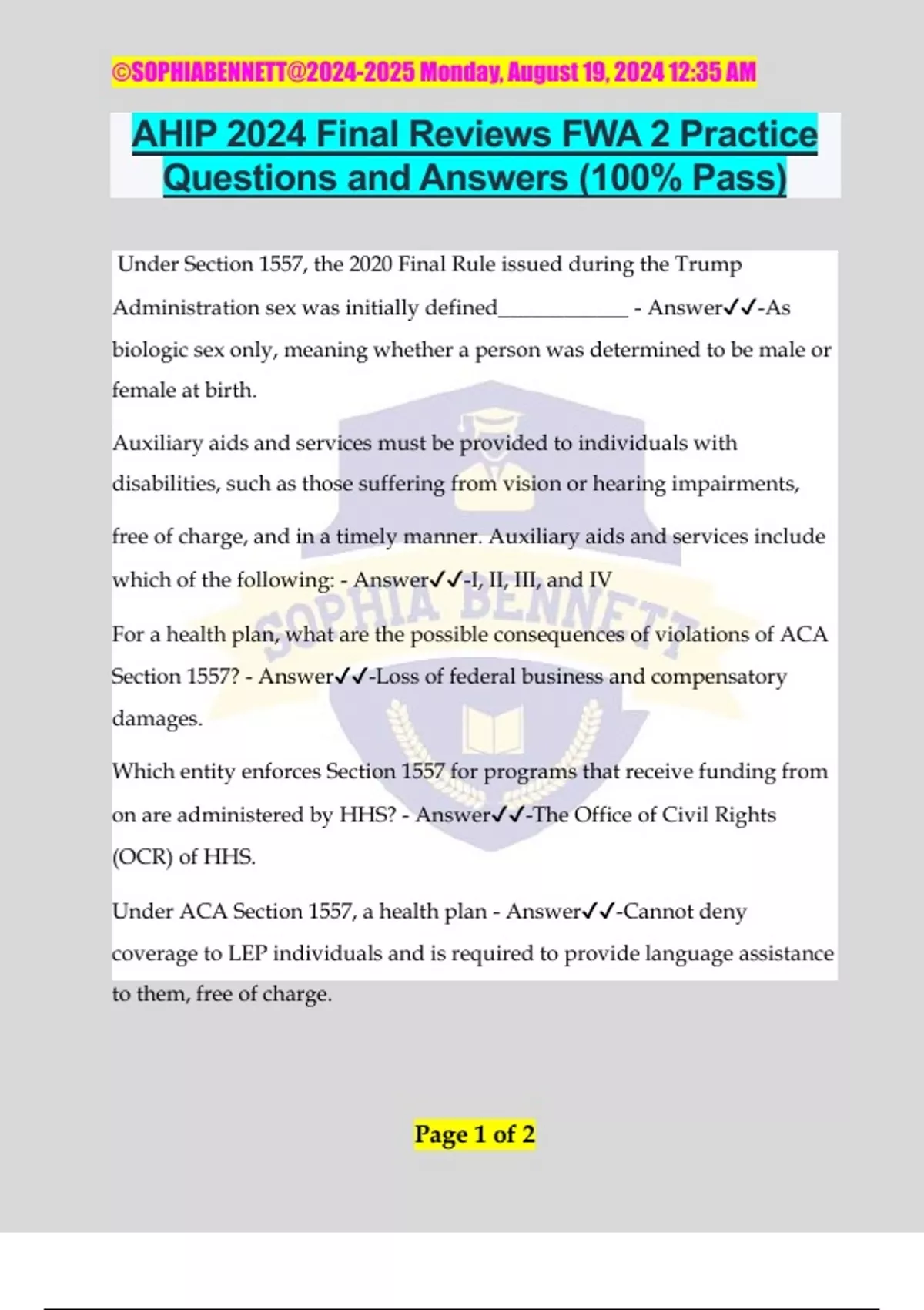 AHIP 2024 Final Reviews FWA 2 Practice Questions and Answers (100% Pass)