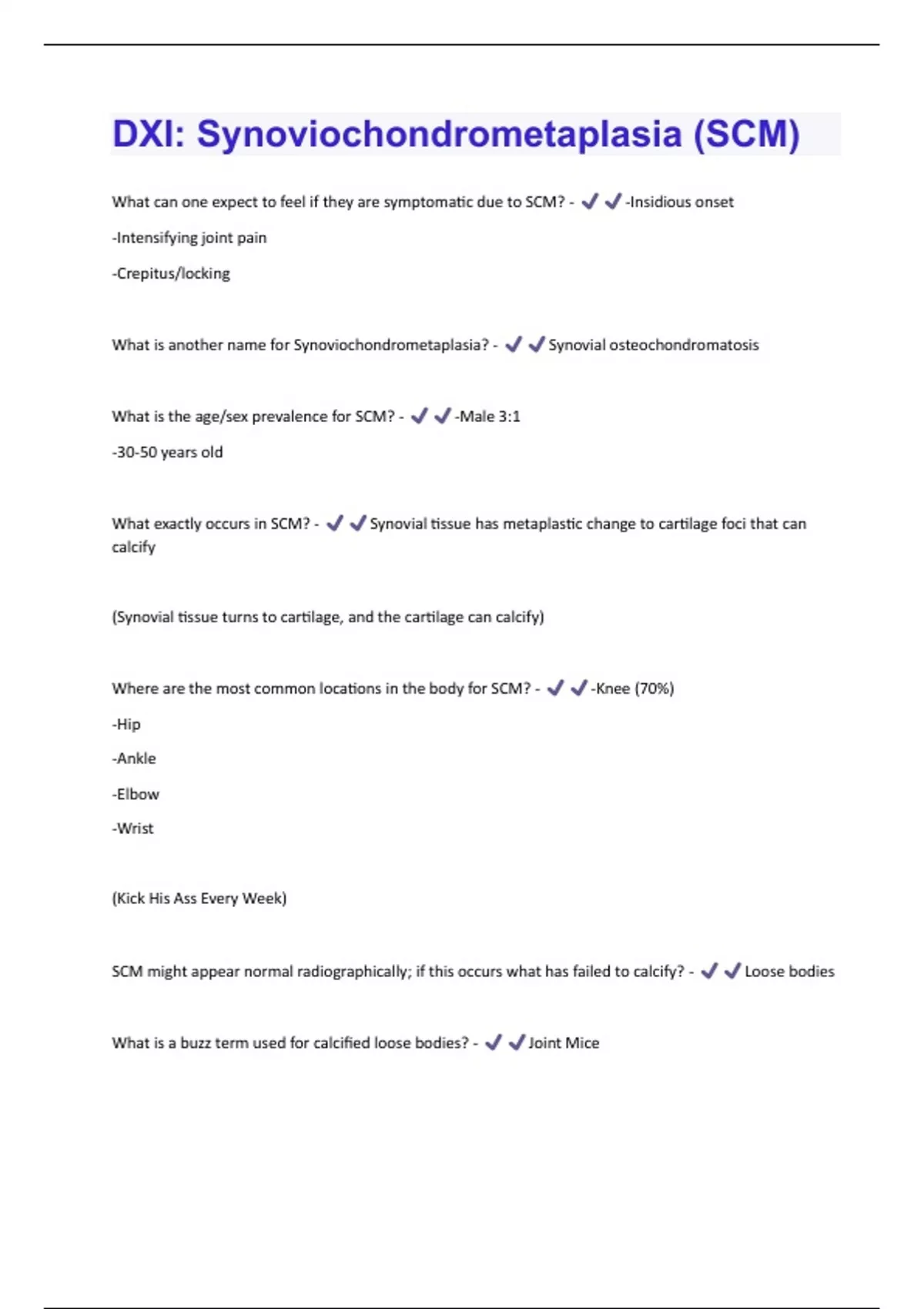 DXI: Synoviochondrometaplasia (SCM) Questions And Answers Rated A+ New Update Assured Satisfaction