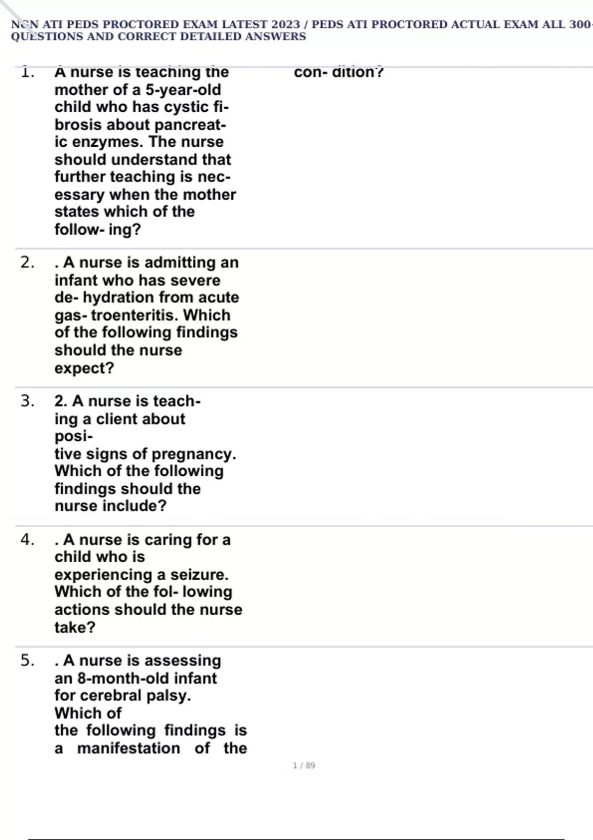 NGN ATI PEDS PROCTORED EXAMS COMPILATION BUNDLE |UPDATED!!!