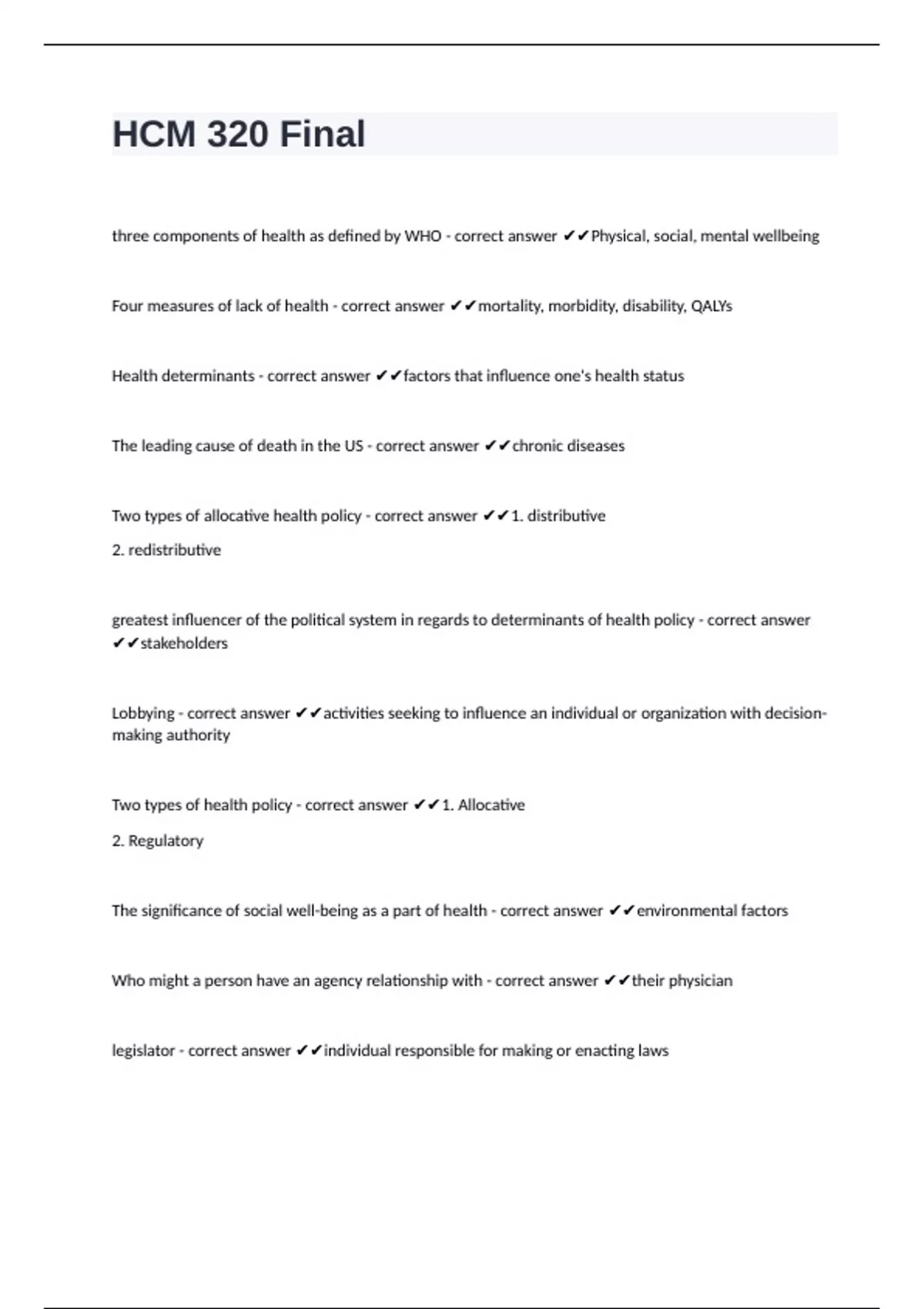 HCM 320 Final 1 questions 100% correctly answered