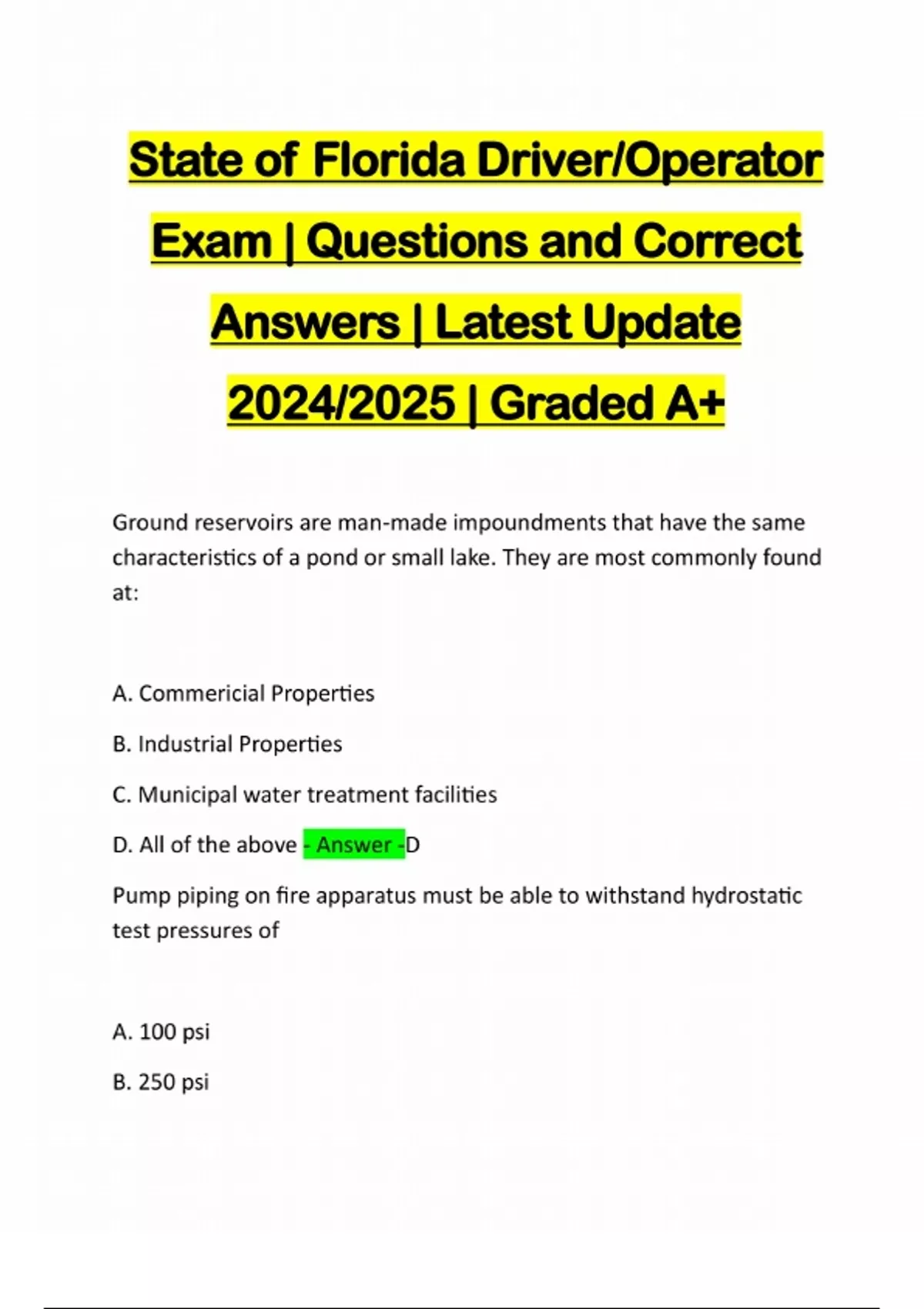 FLORIDA STATE FIRE FIGHTING EXAMS | PACKAGE BUNDLE | QUESTIONS AND CORRECT ANSWERS | LATEST 2024/2025