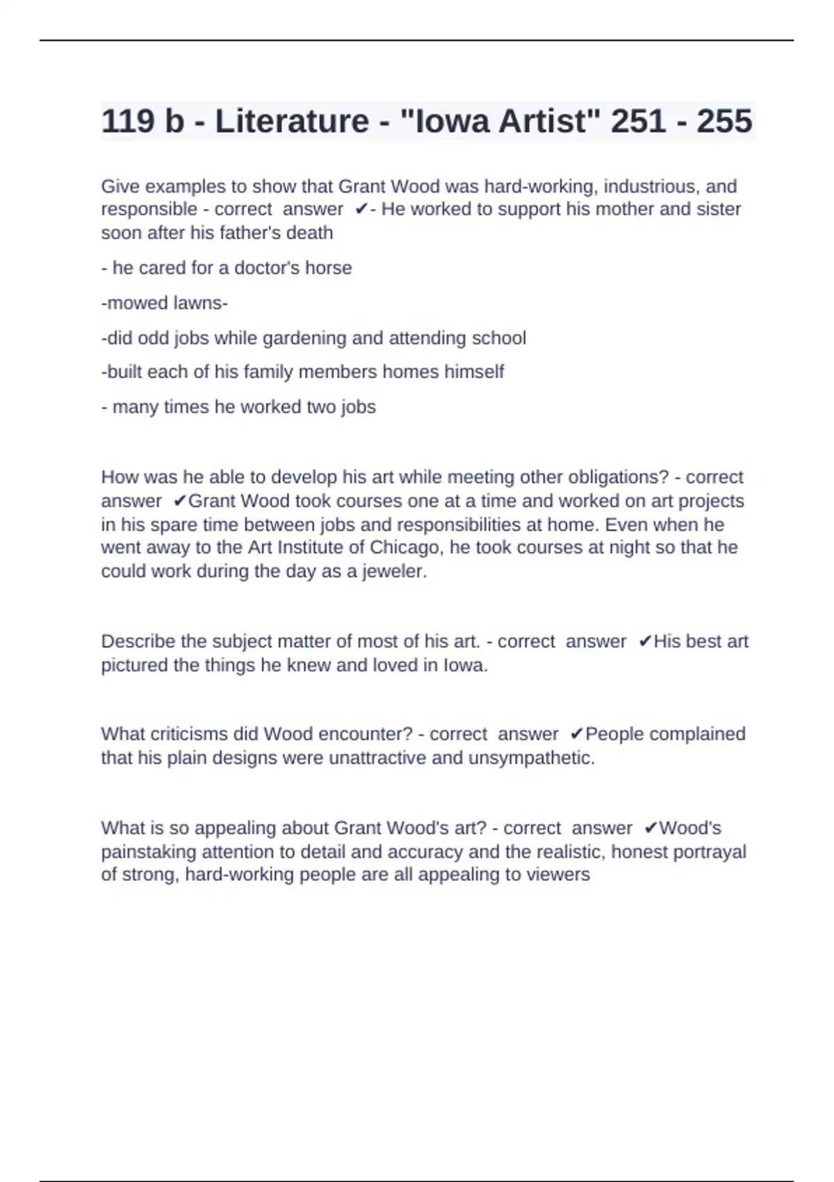 119 b - Literature - "Iowa Artist" 251 - 255 Questions with complete solution 2024