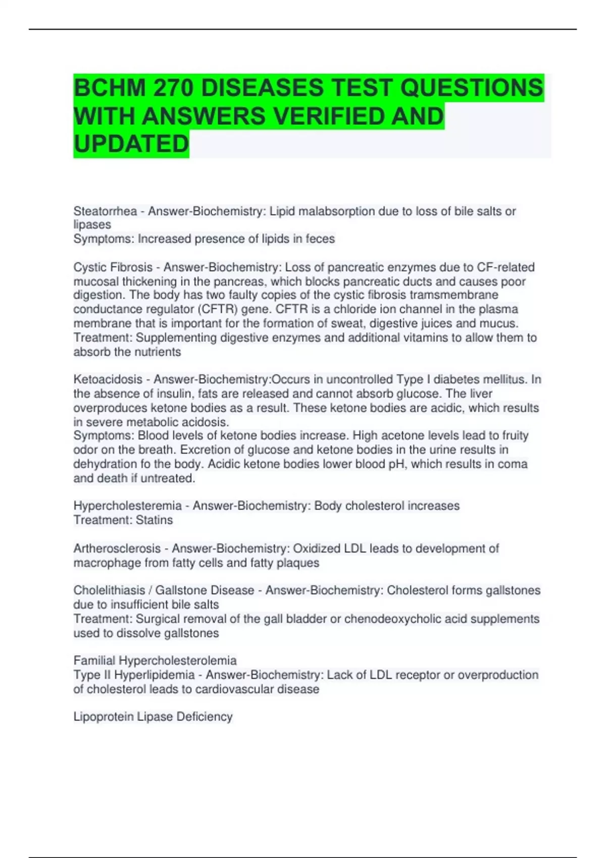 BCHM 270 – DISEASES TEST QUESTIONS WITH CORRECT ANSWERS 2 Exam (elaborations) BCHM 270 DISEASES TEST QUESTIONS WITH ANSWERS VERIFIED AND UPDATED 3 Exam (elaborations) BCHM 270 EXAM QUESTIONS WITH ALL ANSWERS REVISED AND UPDATED 4 Exam (elaborations) BCHM 270 EXAM QUESTIONS WITH CORRECT ANSWERS 5 Exam (elaborations) BCHM 270 MIDTERM TEST QUESTIO