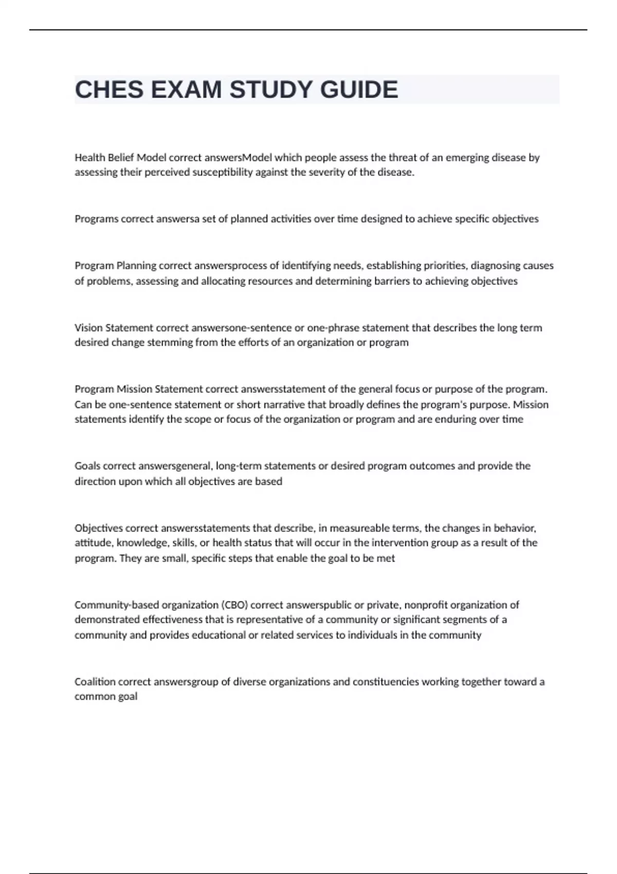 CHES BUNDLED EXAMS 2024 WITH 100% CORRECT ANSWERS