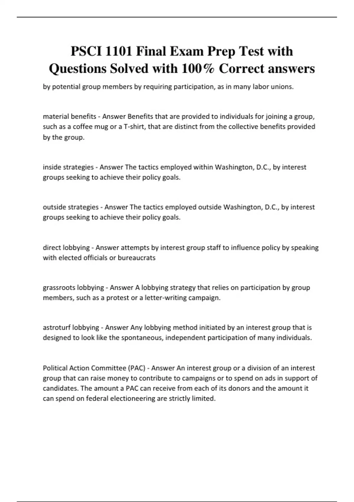 PSCI 1101 Exam Prep Test with Questions Solved with 100% Correct answers