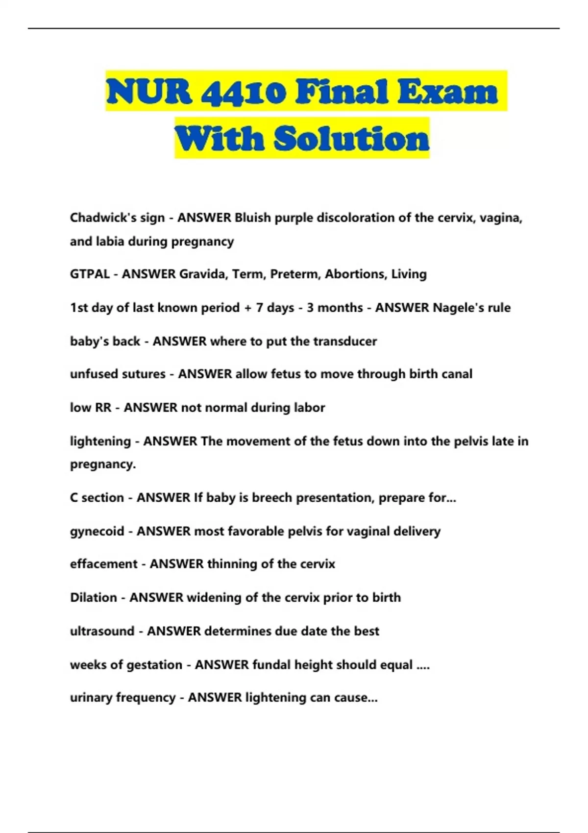 NUR 4410 Final Exam With Solution