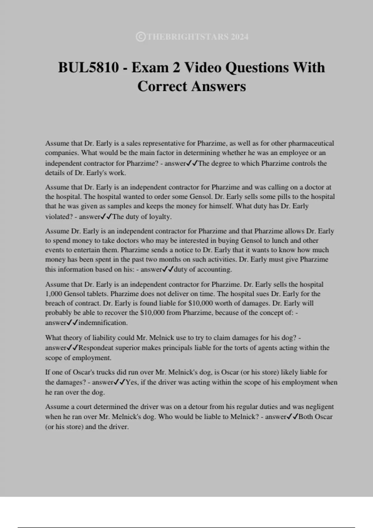 BUL 5810 Part III – Agency Exam Questions With Correct Answers