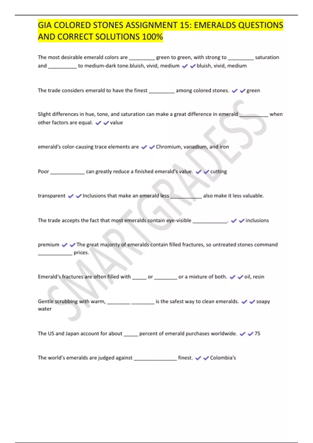 GIA COLORED STONES BUNDLE EXAMS WITH CORRECT SOLUTIONS 100%