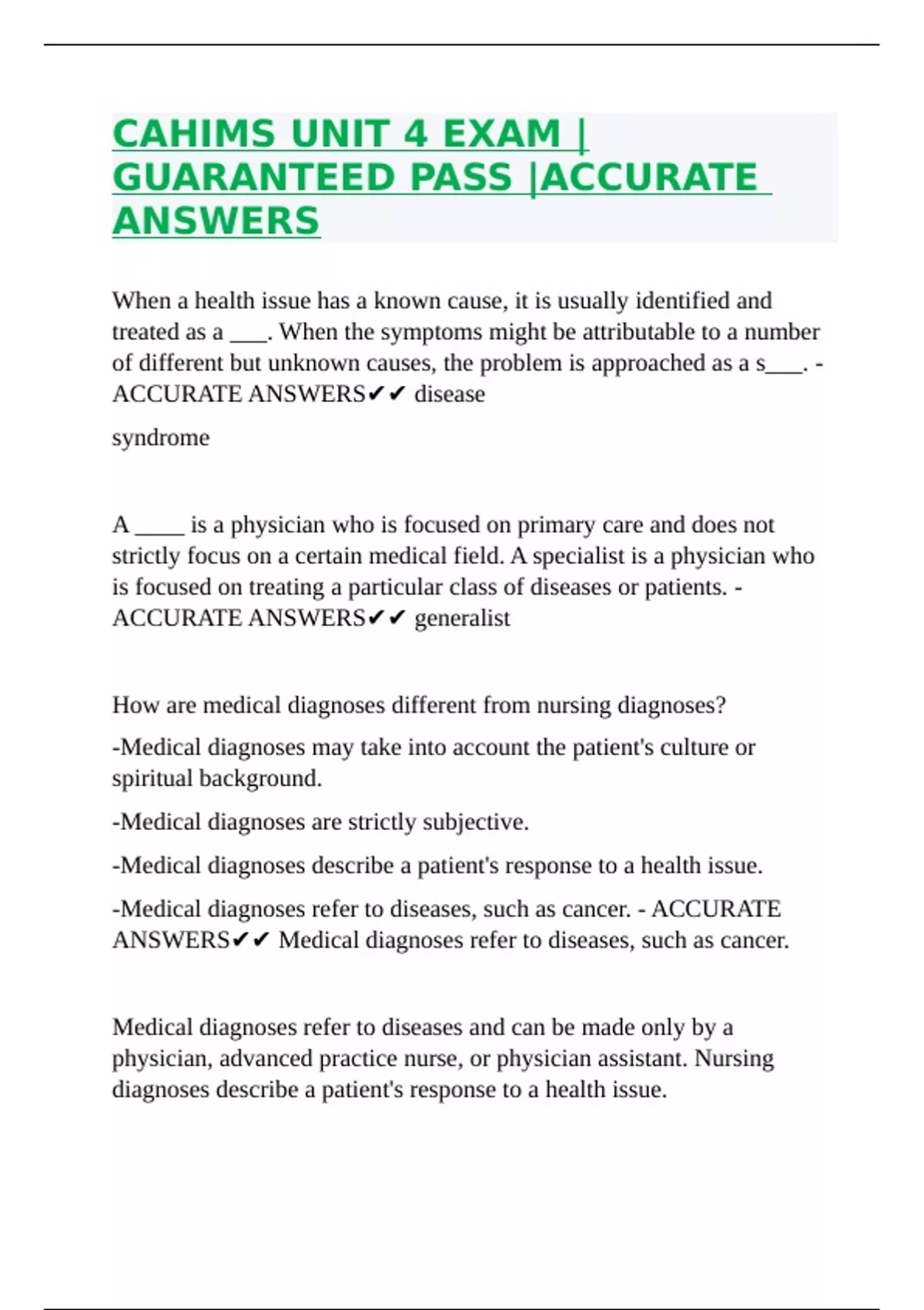 CAHIMS STUDY QUESTIONS |GUARANTEED PASS |2024.2025 CAHIMS REVIEW QUESTIONS |GUARANTEED PASS |ACCURATE ANSWERS CAHIMS EXAM 2024.2025 |GUARANTEED PASS |ACCURATE ANSWERS CAHIMS UNIT 4 EXAM |GUARANTEED PASS |ACCURATE ANSWERS CPHIMS EXAM QUESTIONS |GUARANTEED PASS |ACCURATE ANSWERS