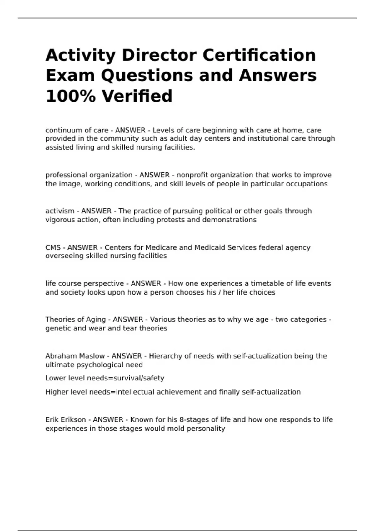 ACTIVITY DIRECTOR CERTIFICATION EXAM BUNDLE QUESTIONS WITH COMPLETE SOLUTIONS!!