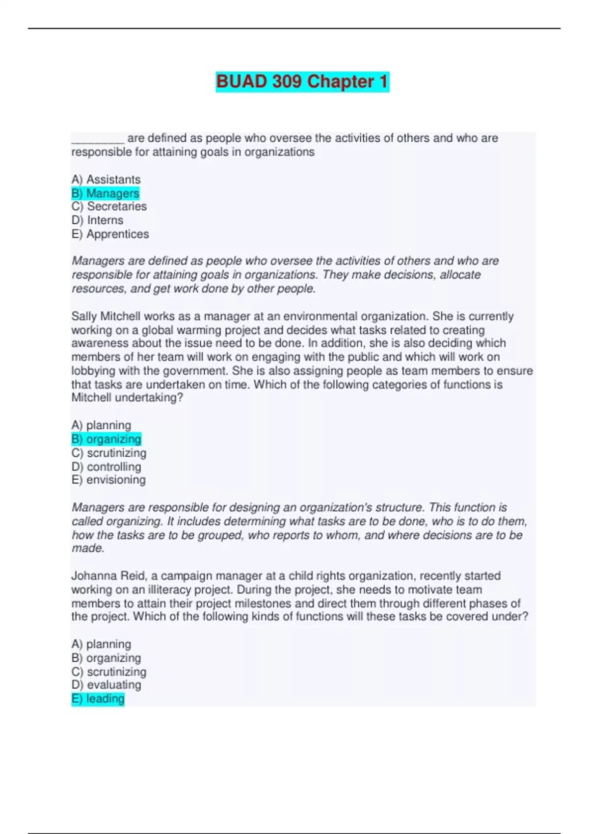 BUAD 309 CHAPTERS 1, 3, 5-6, 9, 11-14, 16 & 18 PACKAGE
