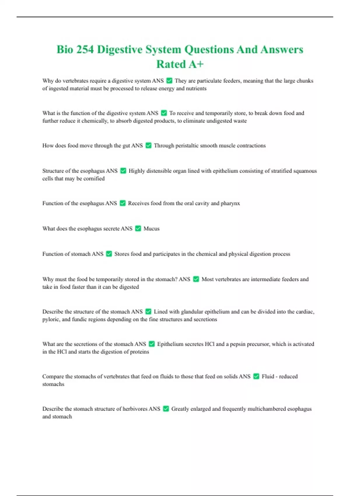 Bio 254 Latest Package Deal With 2024 Updated Quiz