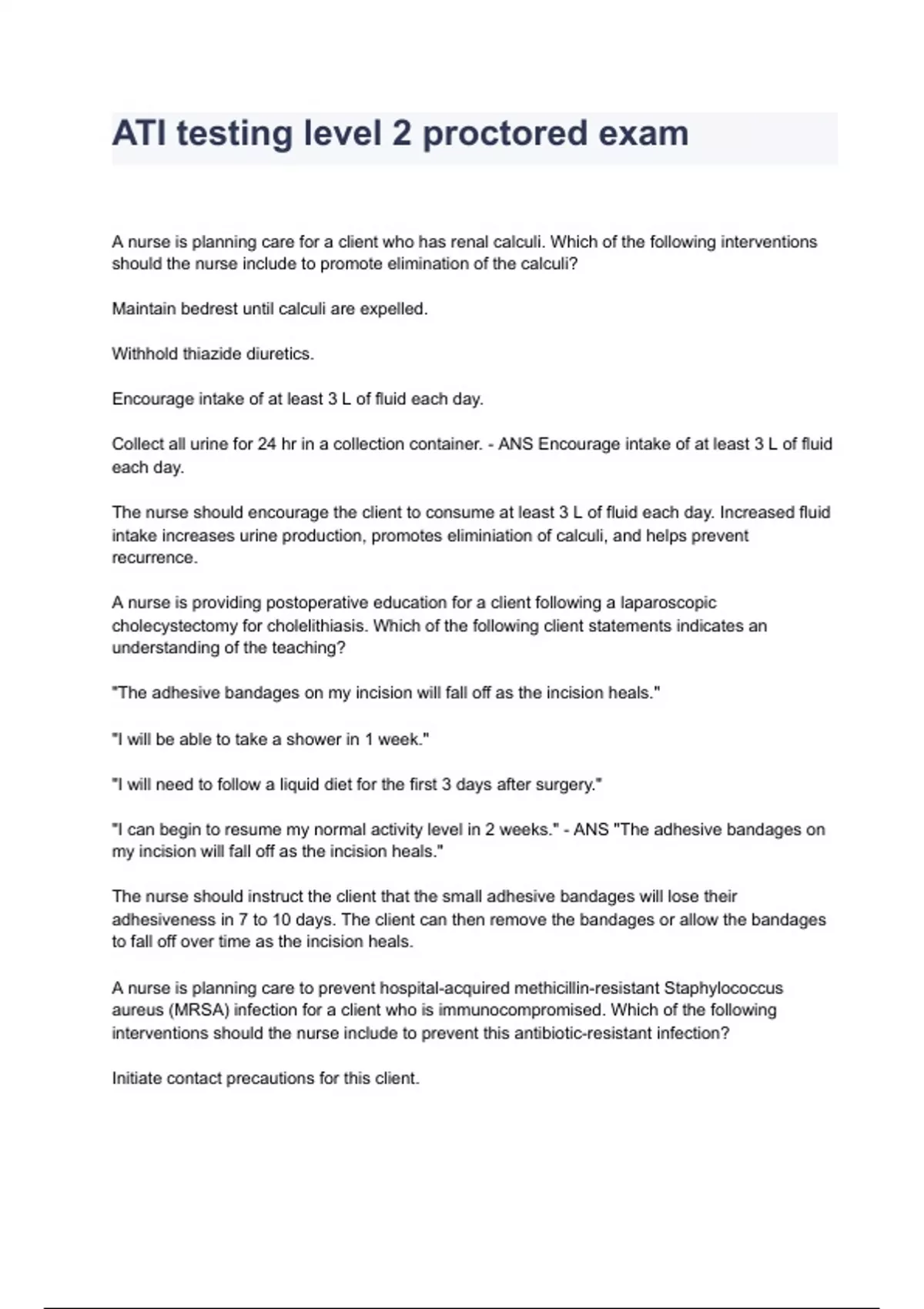 ATI Testing and Remediation Beginning Test Questions And Answers